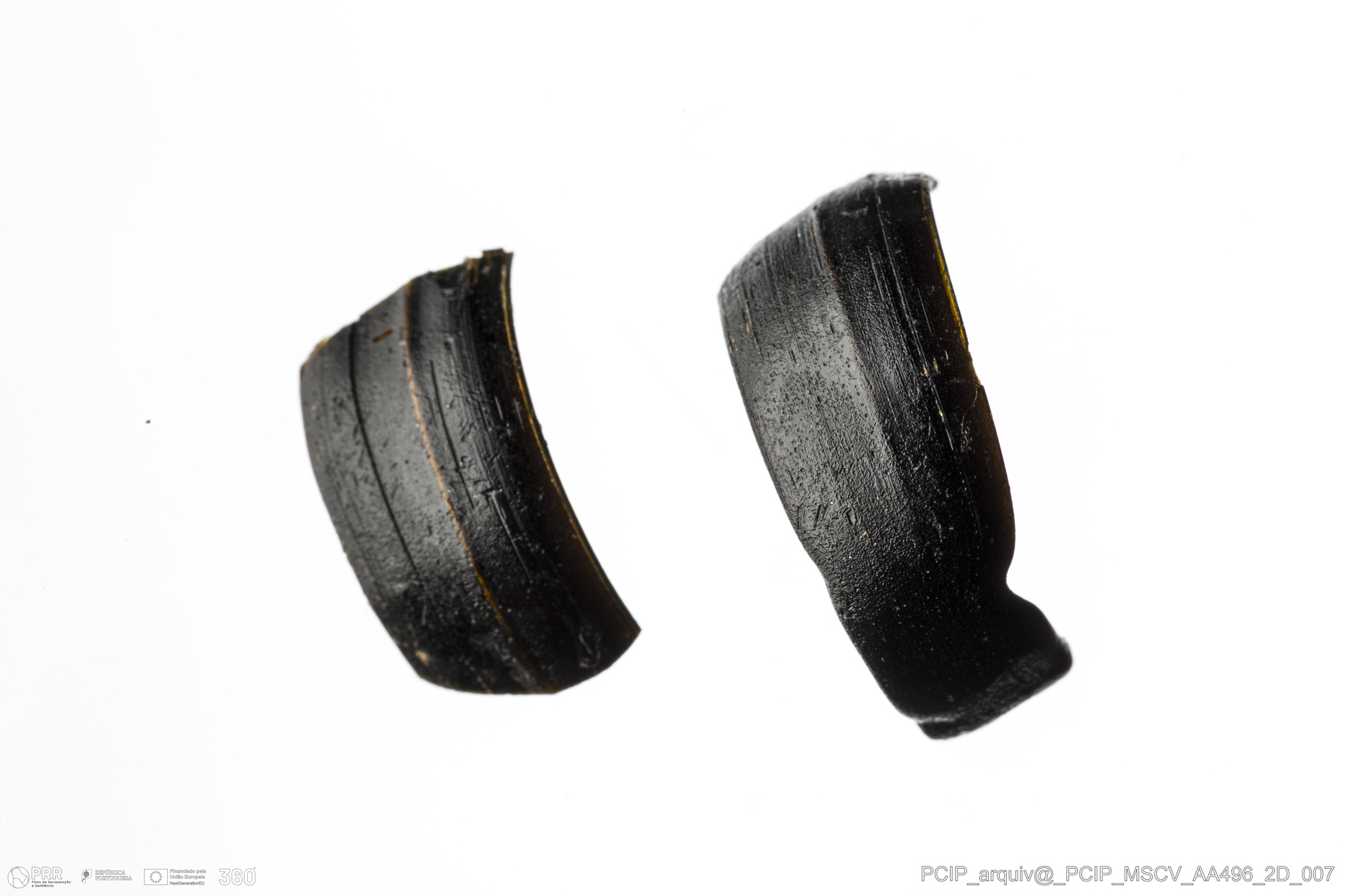 Matéria/Técnica: Vidro; Cronologia: Século XVI- XVII; Autoria: Desconhecida; Dimensões: Diâmetro máximo: 20mm; Altura: 9mm; Espessura: 2mm.