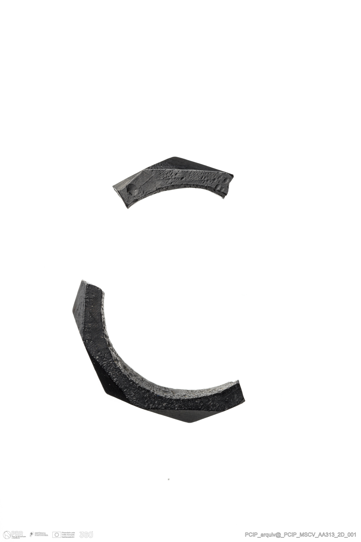 Matéria/Técnica: Azeviche; Cronologia: Século XVI- XVII; Autoria: Desconhecida; Dimensões: Altura máxima: 3mm Espessura máxima: 3mm.