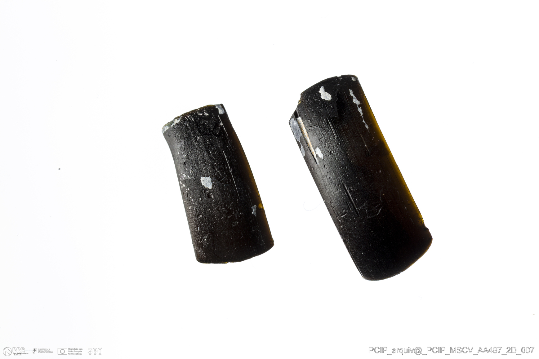 Matéria/Técnica: Vidro; Cronologia: Século XVI- XVII; Autoria: Desconhecida; Dimensões: Altura: 8mm; Espessura: 2mm.