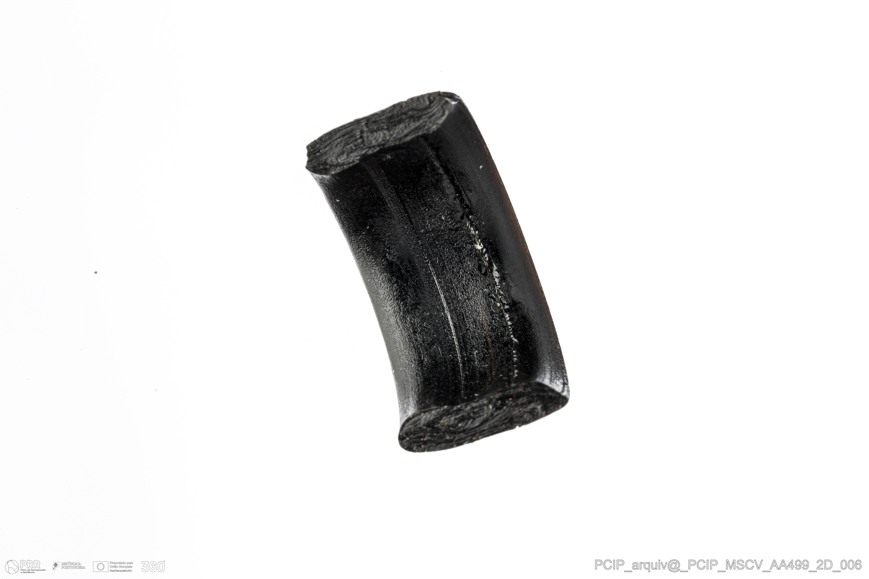 Matéria/Técnica: Vidro; Cronologia: Século XVI- XVII; Autoria: Desconhecida; Dimensões: Diâmetro máximo: 20mm; Altura: 2mm; Espessura: 2mm.