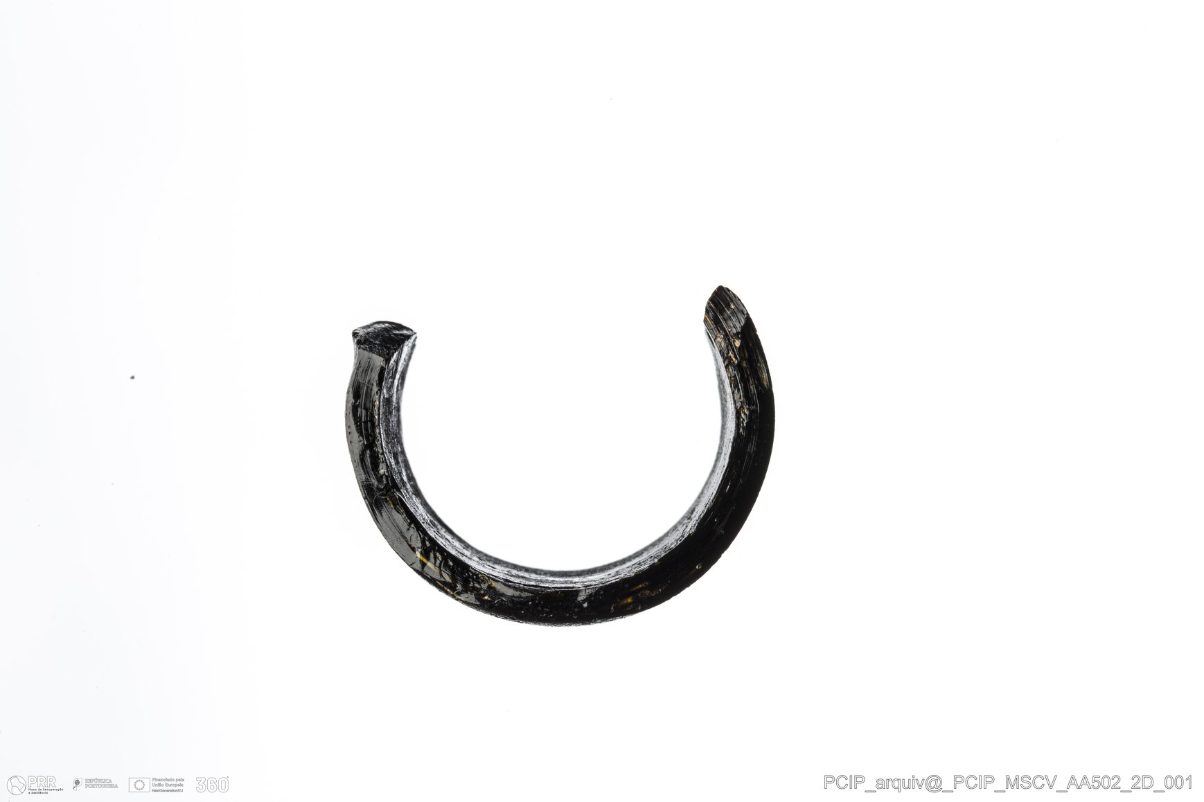 Matéria/Técnica: Vidro; Cronologia: Século XVI- XVII; Autoria: Desconhecida; Dimensões: Diâmetro máximo: 20mm; Altura: 10mm; Espessura: 3mm.
