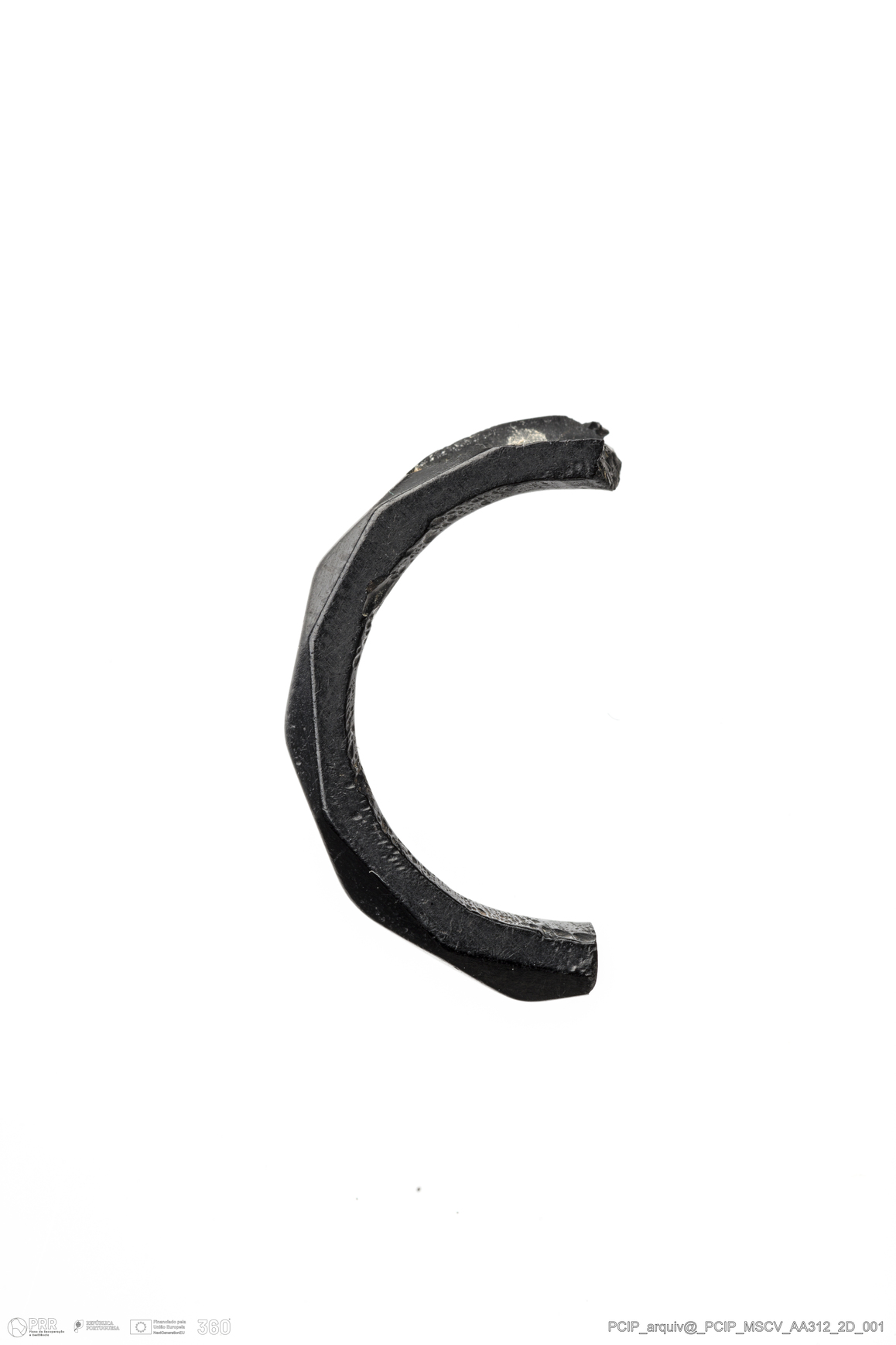 Matéria/Técnica: Azeviche; Cronologia: Século XVI- XVII; Autoria: Desconhecida; Dimensões: Diâmetro máximo: 21mm Altura máxima: 3mm Espessura máxima: 3mm.