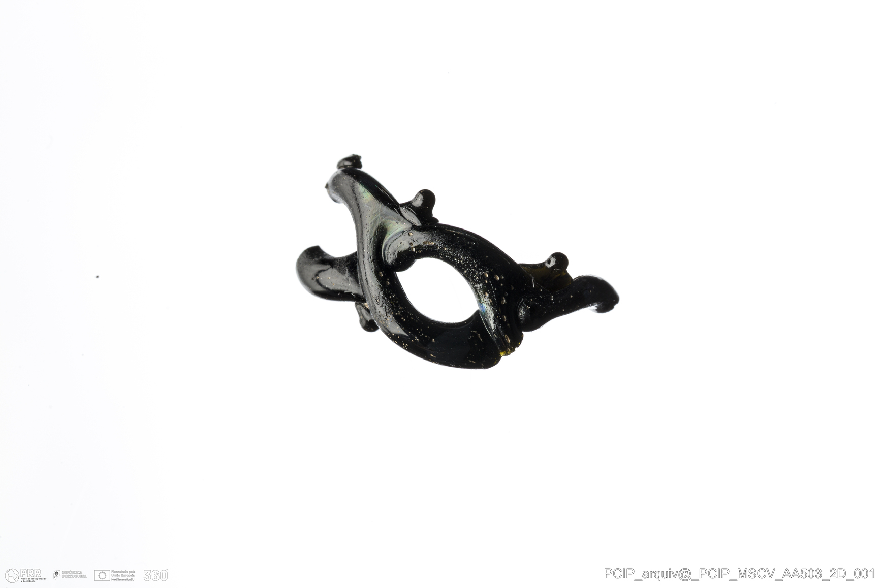Matéria/Técnica: Vidro; Cronologia: Século XVI- XVII; Autoria: Desconhecida; Dimensões: Altura: 8mm; Espessura: 2mm.
