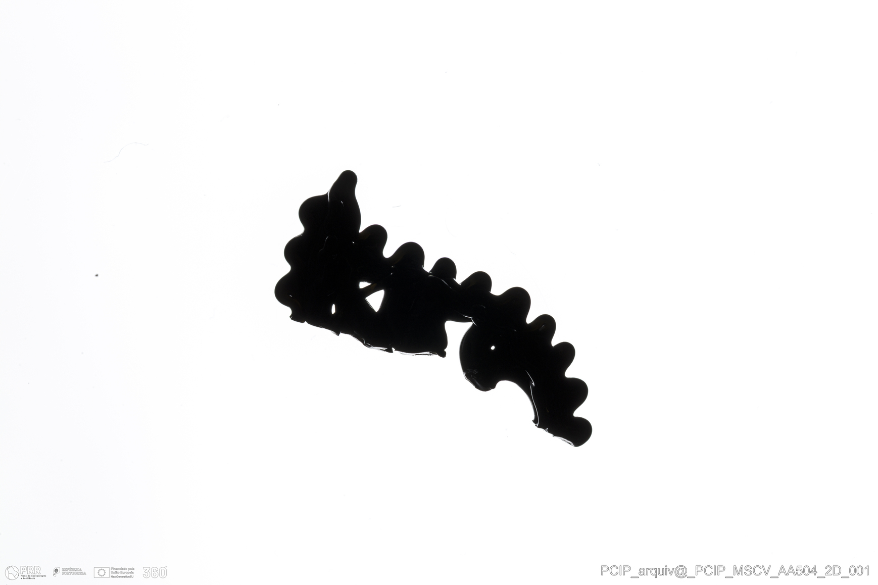 Matéria/Técnica: Vidro; Cronologia: Século XVI- XVII; Autoria: Desconhecida; Dimensões: Comprimento: 20mm; Largura: 9mm; Espessura: 3mm.