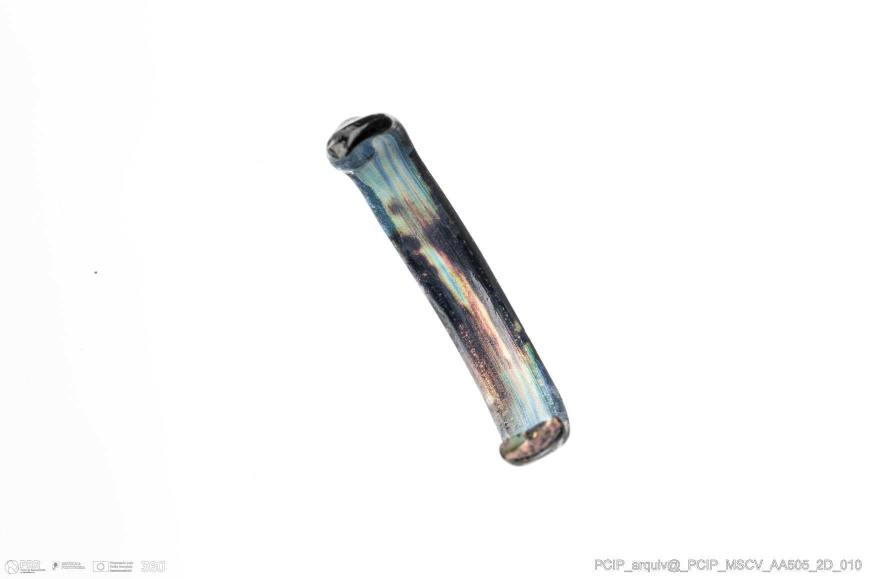 Matéria/Técnica: Vidro; Cronologia: Século XVI- XVII; Autoria: Desconhecida; Dimensões: Diâmetro máximo: 22mm; Altura: 4mm; Espessura: 1mm.
