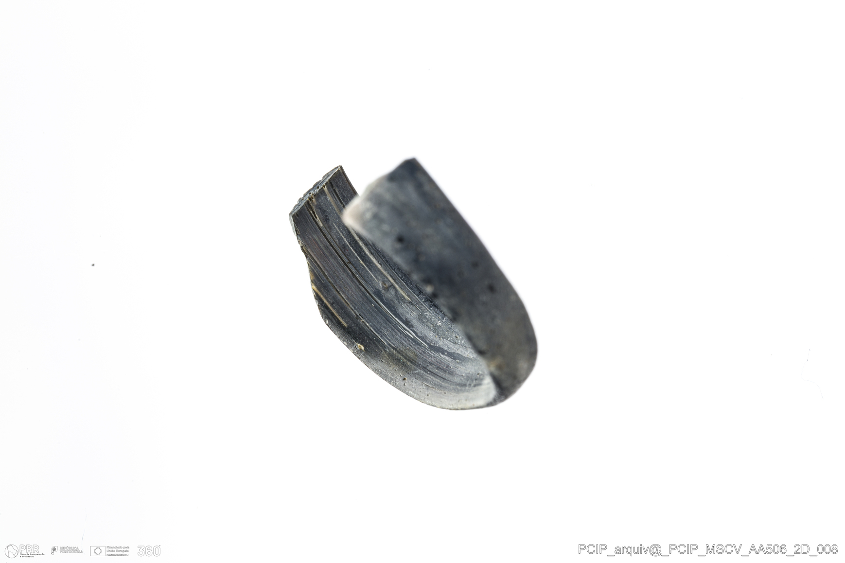 Matéria/Técnica: Vidro; Cronologia: Século XVI- XVII; Autoria: Desconhecida; Dimensões: Diâmetro máximo: 20mm; Altura: 6mm; Espessura: 1mm.