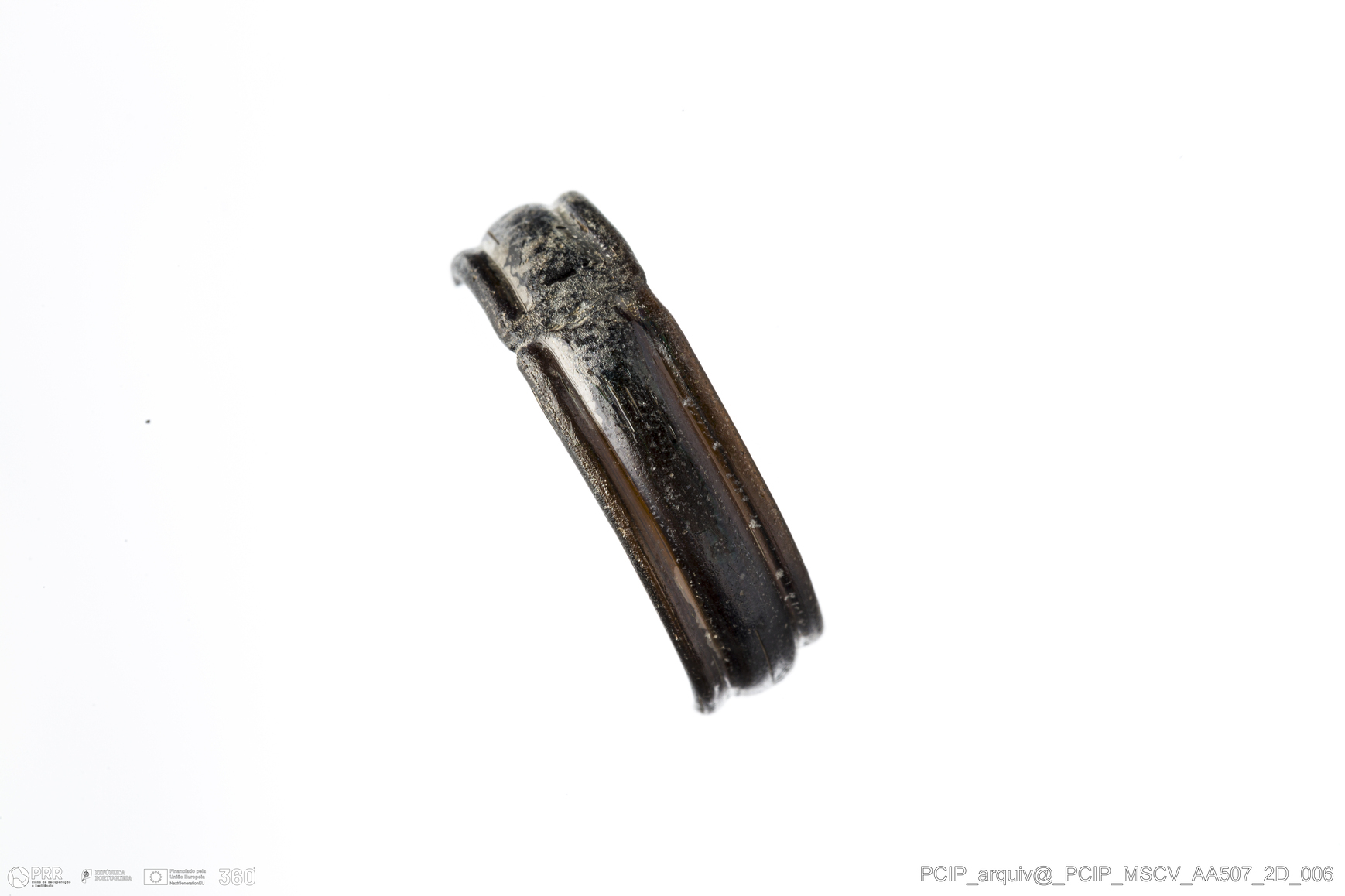 Matéria/Técnica: Vidro; Cronologia: Século XVI- XVII; Autoria: Desconhecida; Dimensões: Diâmetro máximo: 19mm; Altura: 5mm; Espessura: 1mm.