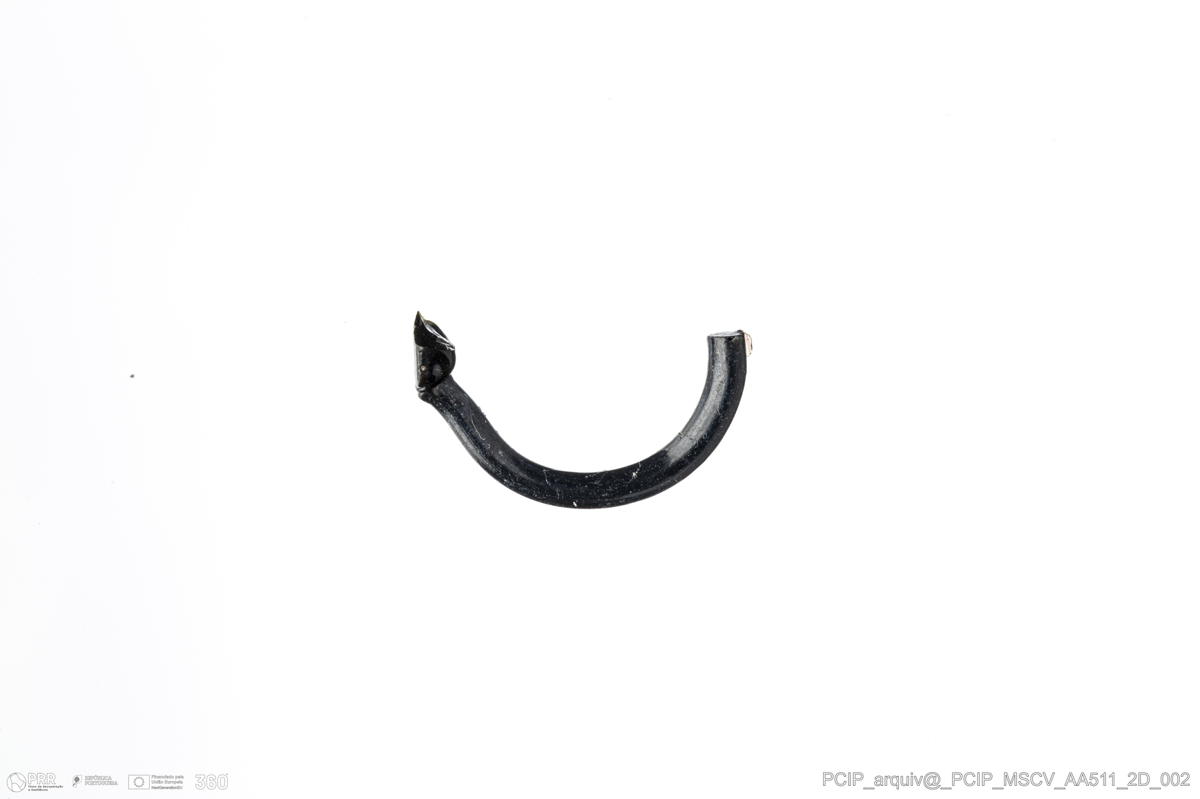 Matéria/Técnica: Vidro; Cronologia: Século XVI- XVII; Autoria: Desconhecida; Dimensões: Diâmetro máximo: 14mm; Altura: 3mm; Espessura: 2mm.