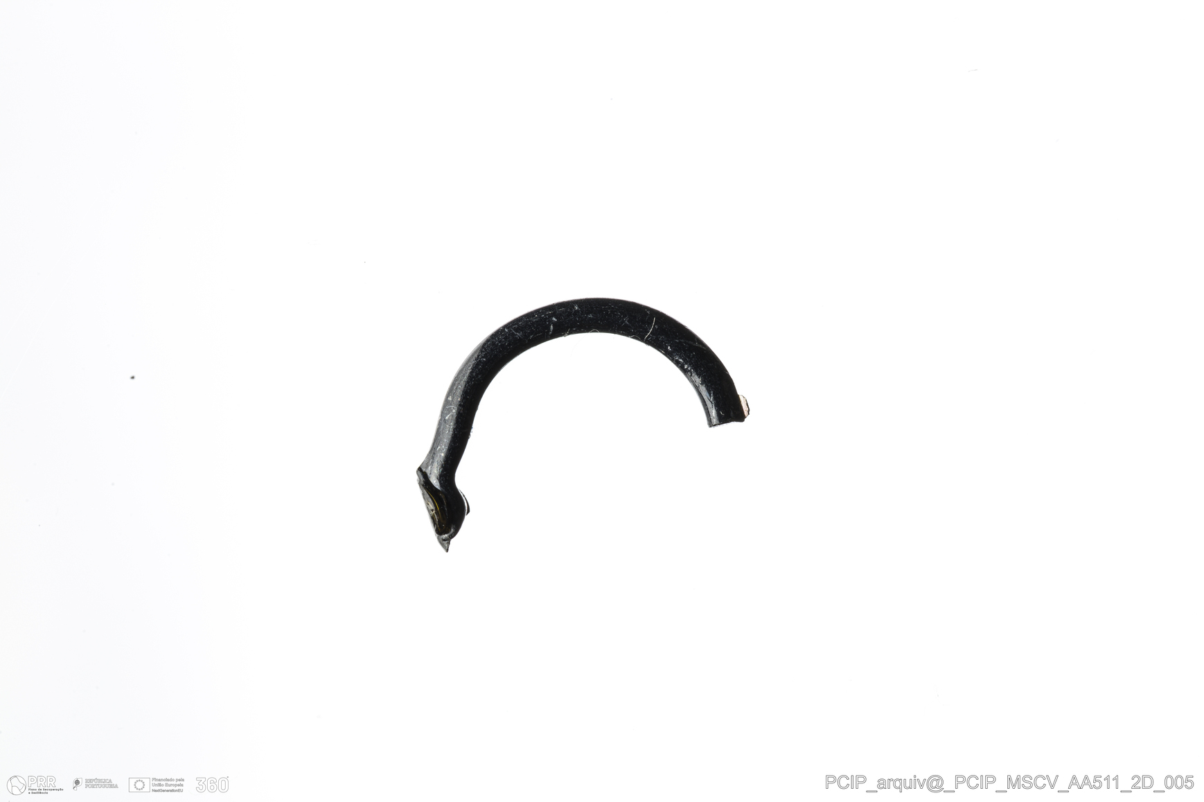 Matéria/Técnica: Vidro; Cronologia: Século XVI- XVII; Autoria: Desconhecida; Dimensões: Diâmetro máximo: 14mm; Altura: 3mm; Espessura: 2mm.
