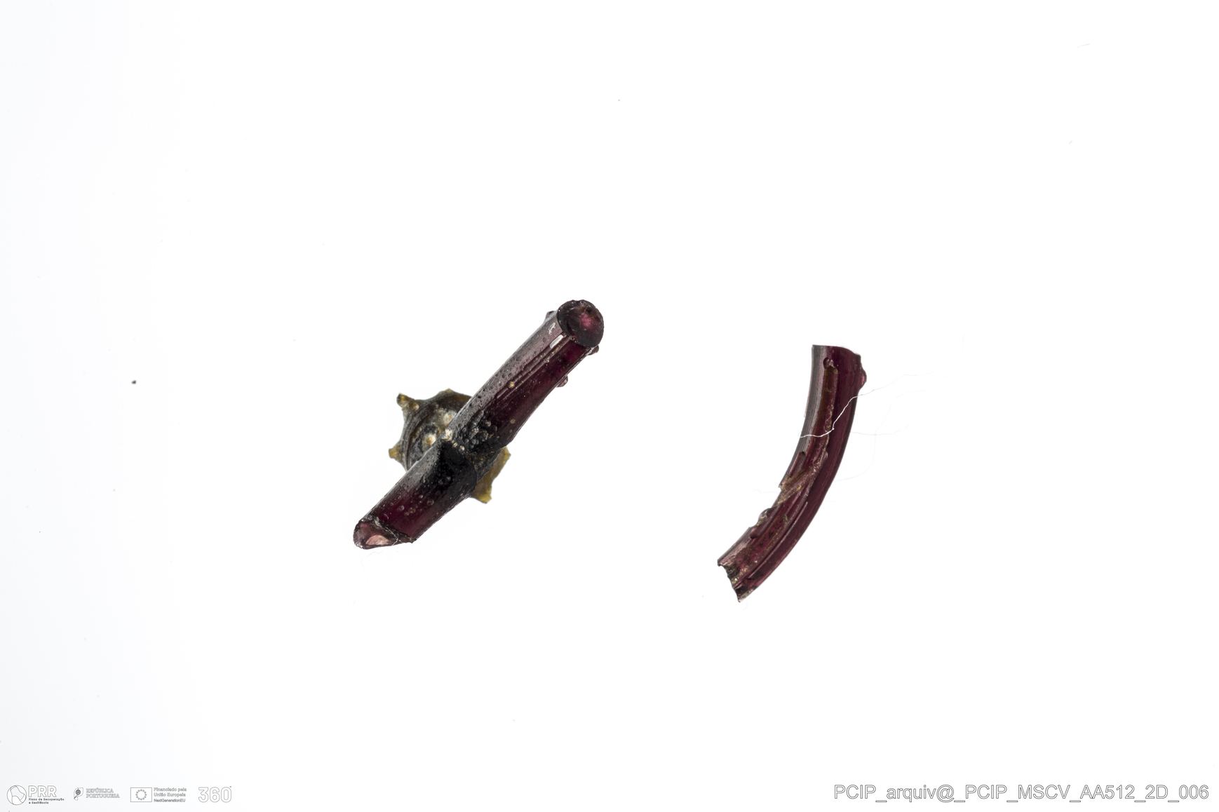 Matéria/Técnica: Vidro; Cronologia: Século XVI- XVII; Autoria: Desconhecida; Dimensões: Altura: 3mm; Espessura: 3mm.