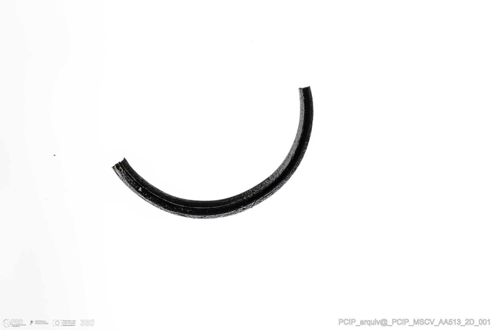 Matéria/Técnica: Vidro; Cronologia: Século XVI- XVII; Autoria: Desconhecida; Dimensões: Diâmetro máximo: 21mm; Altura: 5mm; Espessura: 1mm.