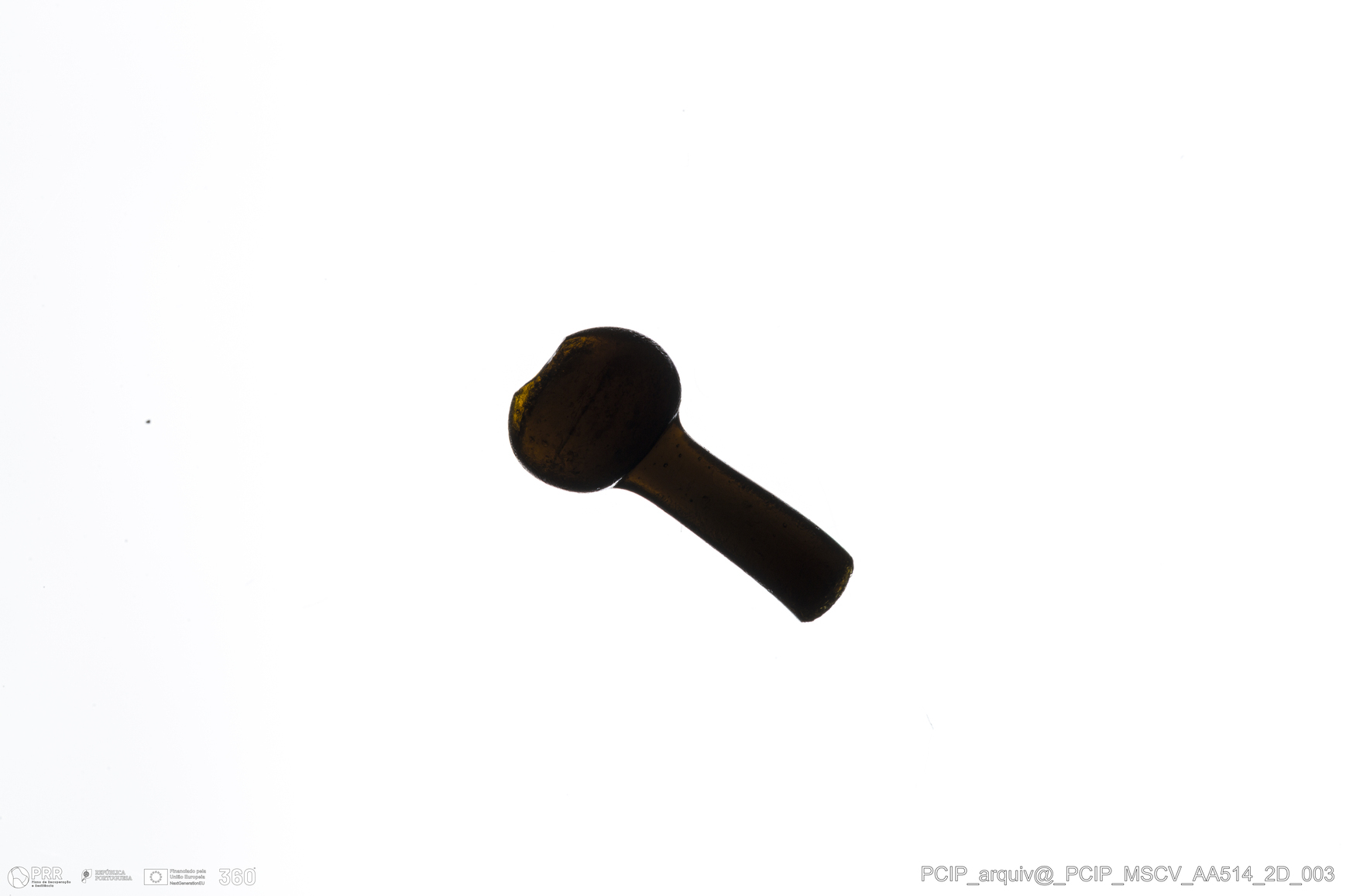 Matéria/Técnica: Vidro; Cronologia: Século XVI- XVII; Autoria: Desconhecida; Dimensões: Altura: 6mm; Espessura: 3mm.