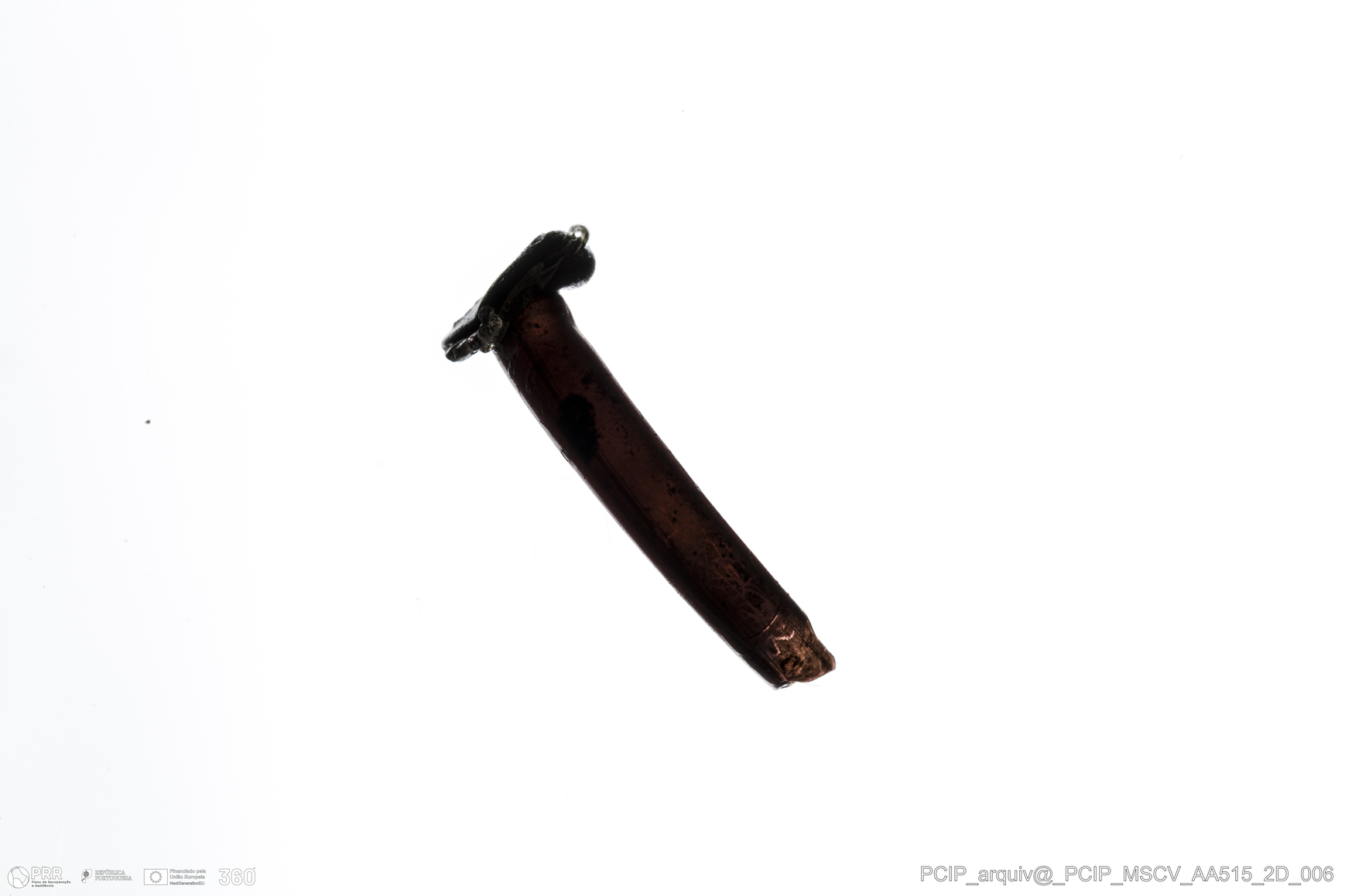 Matéria/Técnica: Vidro; Cronologia: Século XVI- XVII; Autoria: Desconhecida; Dimensões: Altura: 7mm; Espessura: 4mm.