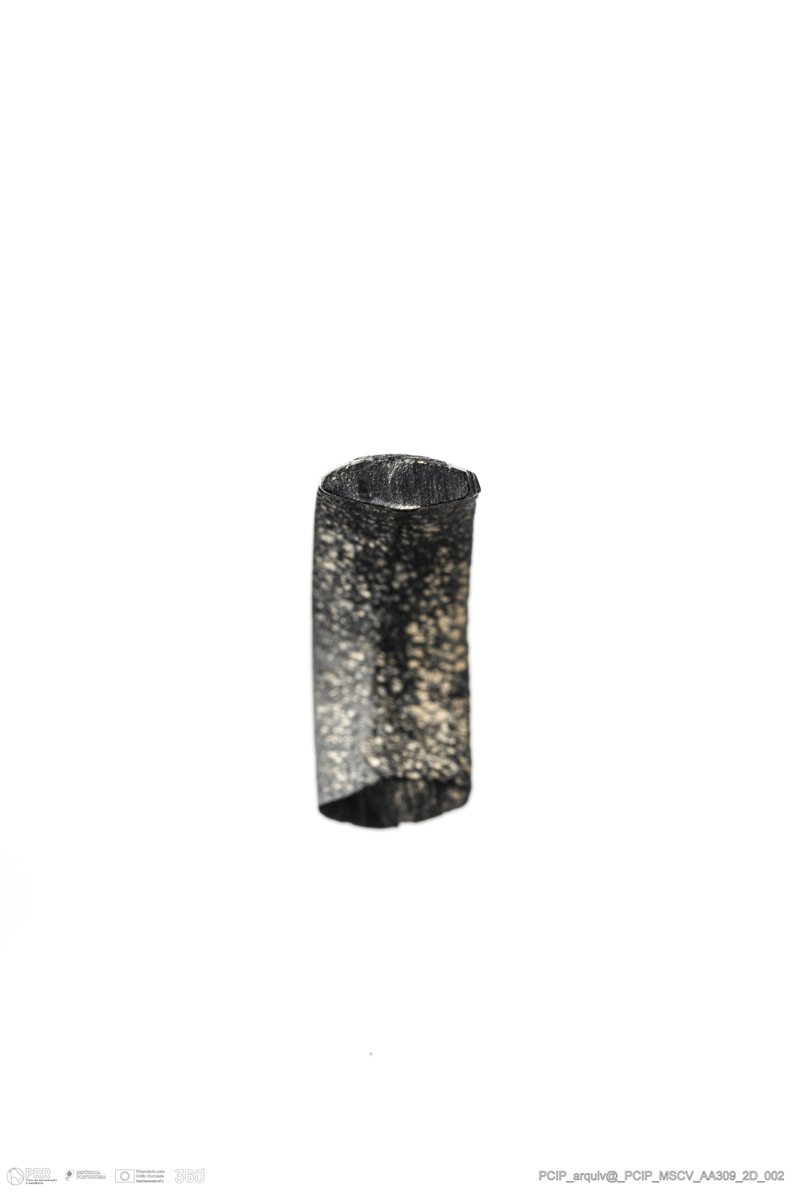 Matéria/Técnica: Azeviche; Cronologia: Século XVI-Século XVII; Autoria: Desconhecida; Dimensões: Comprimento: 7,5mm; Largura: 7mm; Altura: 6,5mm.