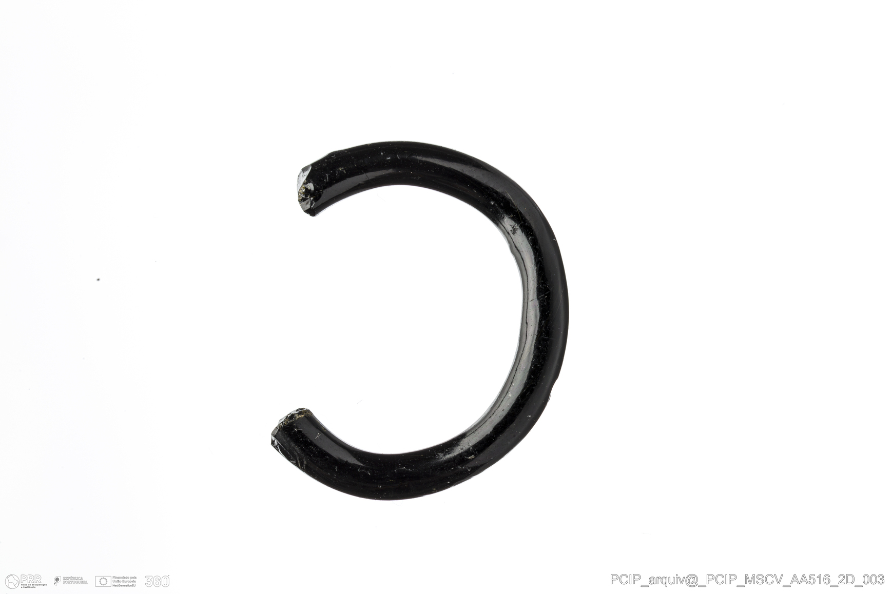 Matéria/Técnica: Vidro; Cronologia: Século XVI- XVII; Autoria: Desconhecida; Dimensões: Diâmetro máximo: 20mm; Altura: 3mm; Espessura: 3mm.