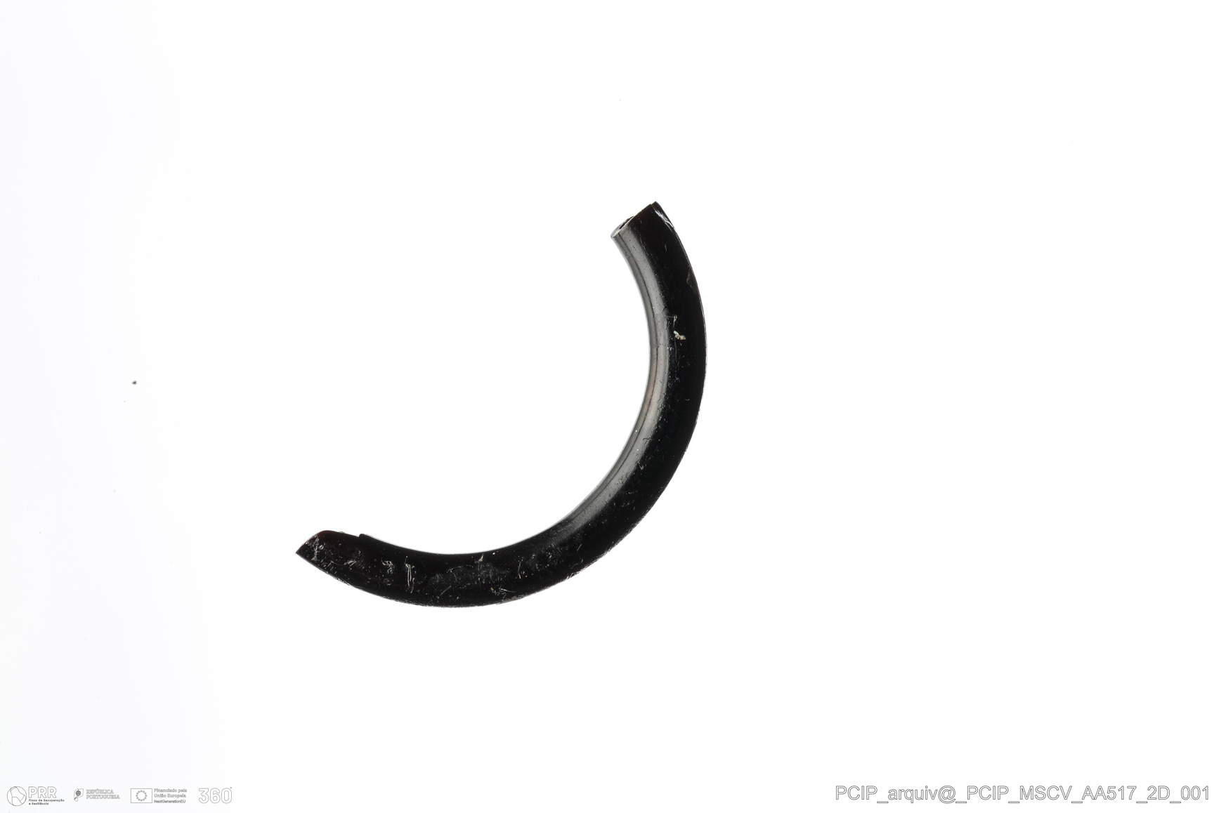 Matéria/Técnica: Vidro; Cronologia: Século XVI- XVII; Autoria: Desconhecida; Dimensões: Diâmetro máximo: 20mm; Altura: 3mm; Espessura: 2mm.