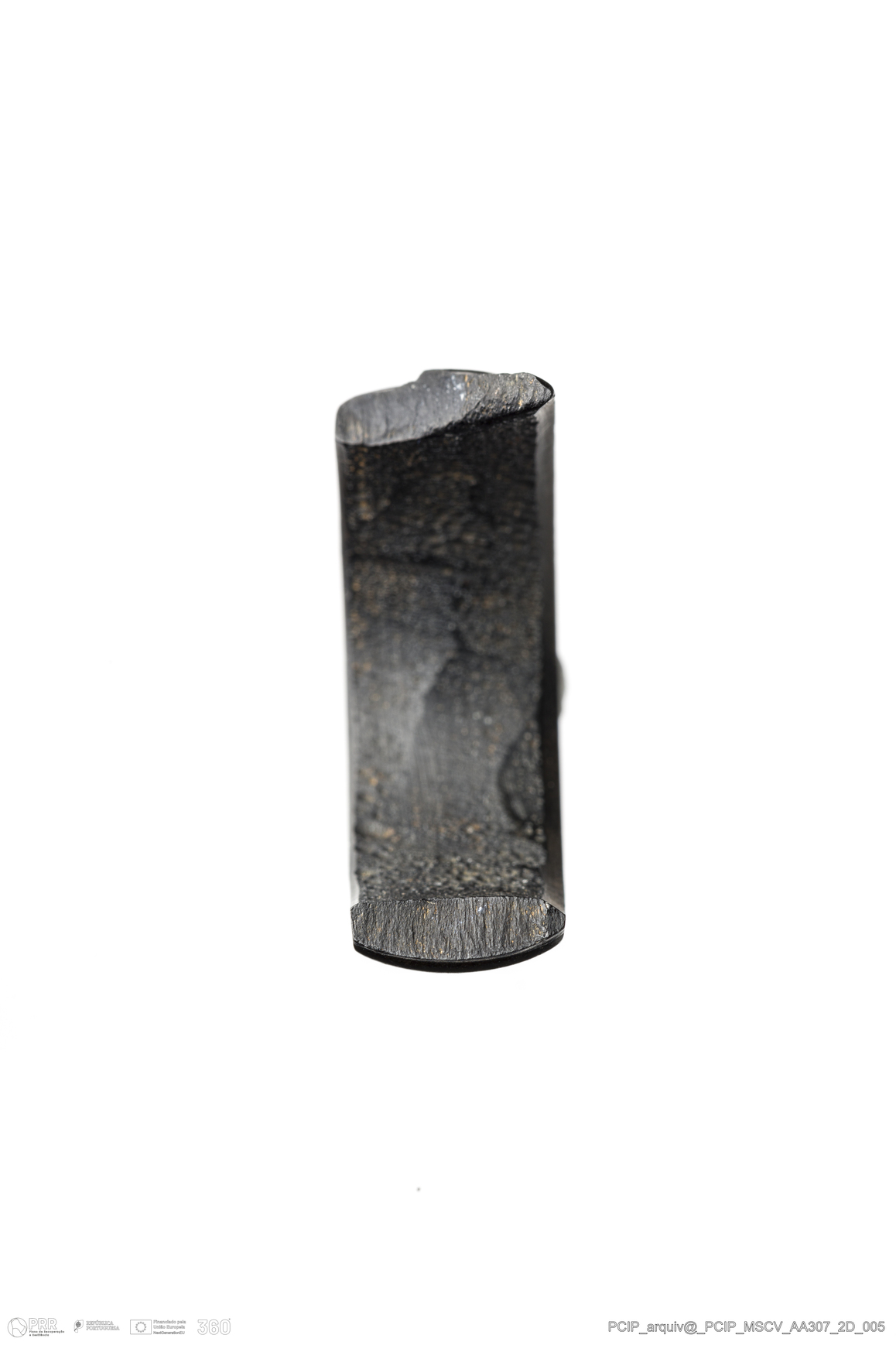 Matéria/Técnica: Azeviche; Cronologia: Século XVI-Século XVII; Autoria: Desconhecida; Dimensões: Diâmetro: 21,5mm; Altura: 8mm.
