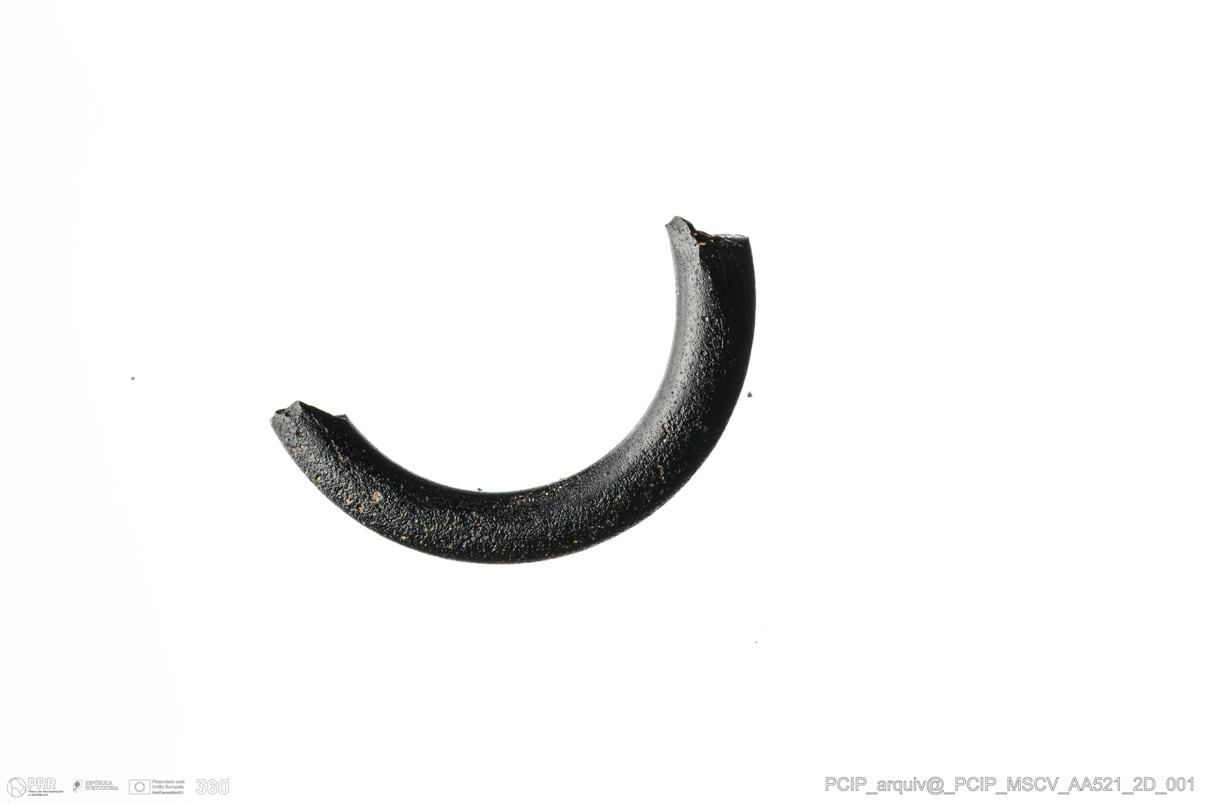 Matéria/Técnica: Vidro; Cronologia: Século XVI- XVII; Autoria: Desconhecida; Dimensões: Diâmetro máximo: 21mm; Altura: 3mm; Espessura: 3mm.