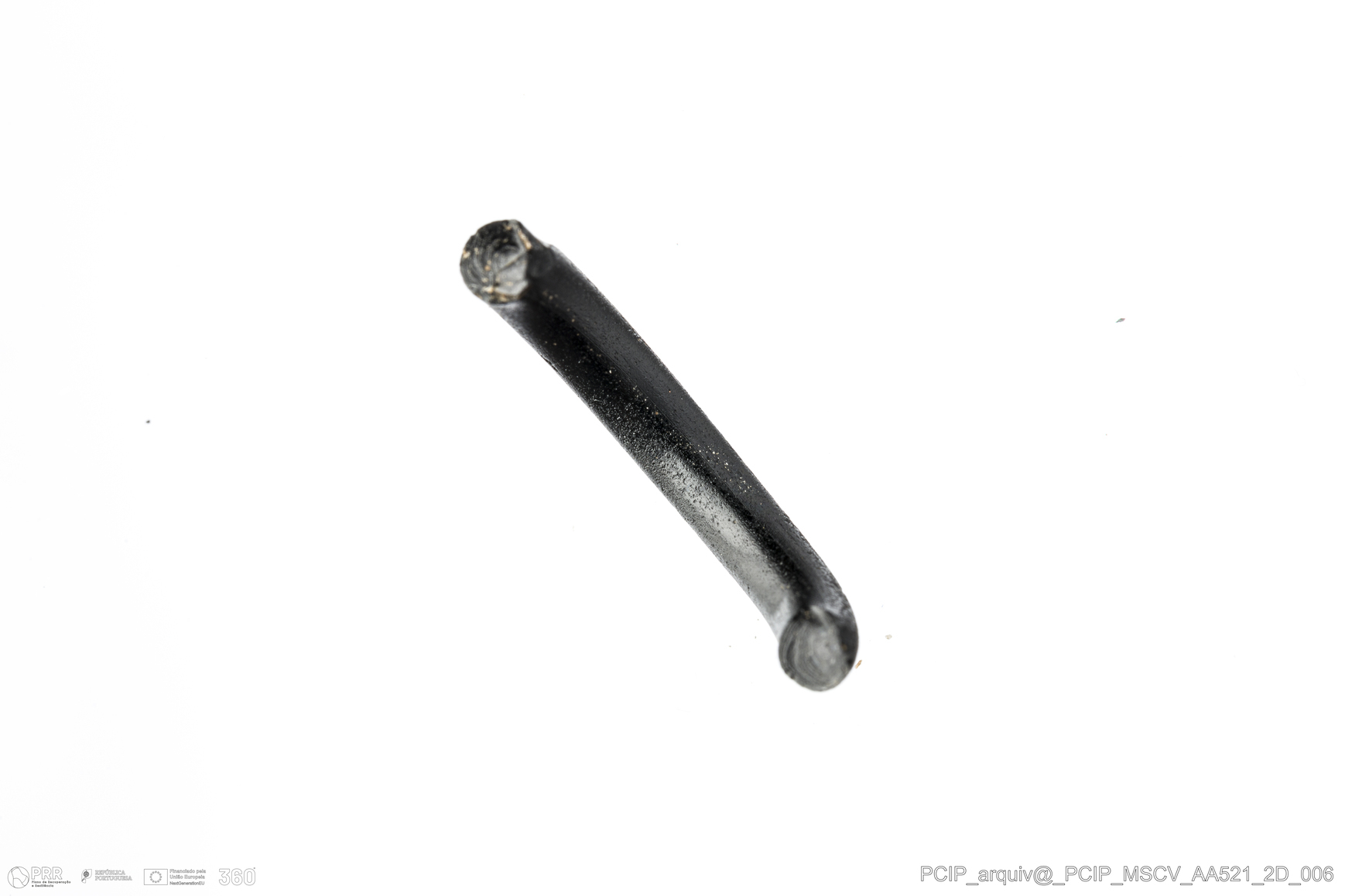 Matéria/Técnica: Vidro; Cronologia: Século XVI- XVII; Autoria: Desconhecida; Dimensões: Diâmetro máximo: 21mm; Altura: 3mm; Espessura: 3mm.