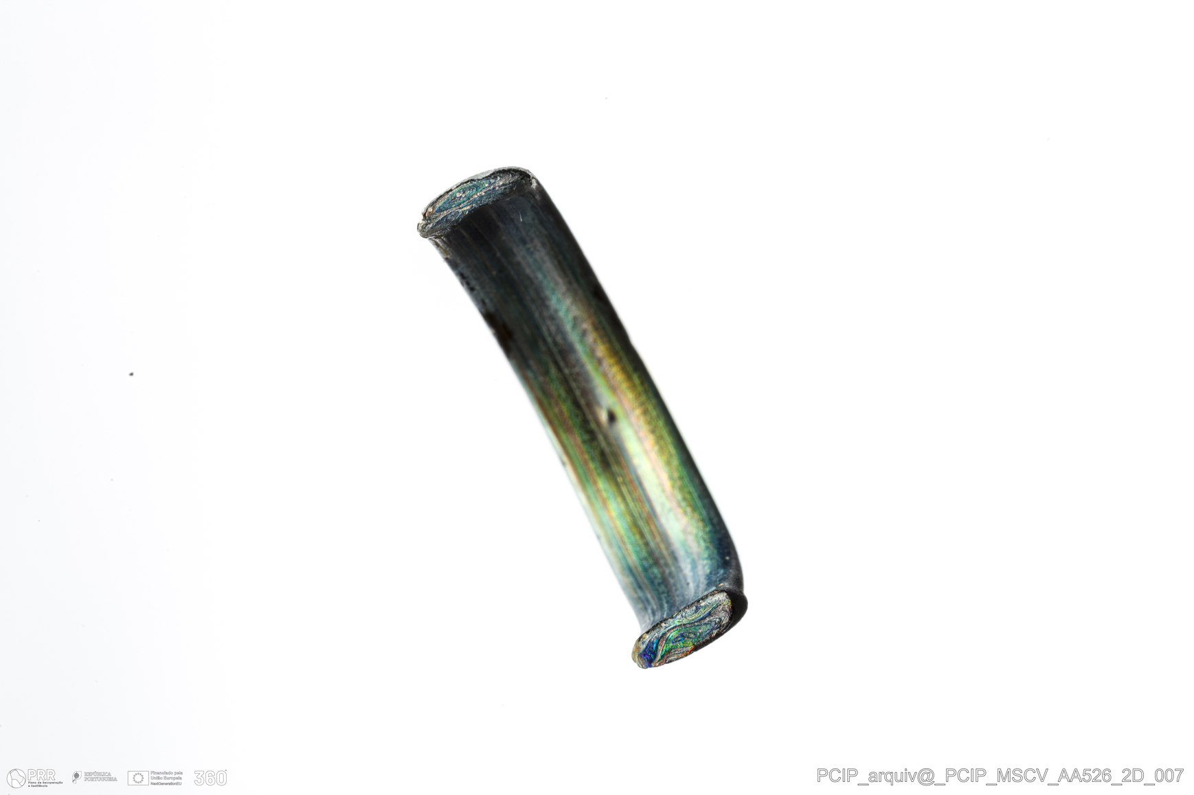 Matéria/Técnica: Vidro; Cronologia: Século XVI- XVII; Autoria: Desconhecida; Dimensões: Diâmetro máximo: 19mm; Altura: 5mm; Espessura: 1mm.