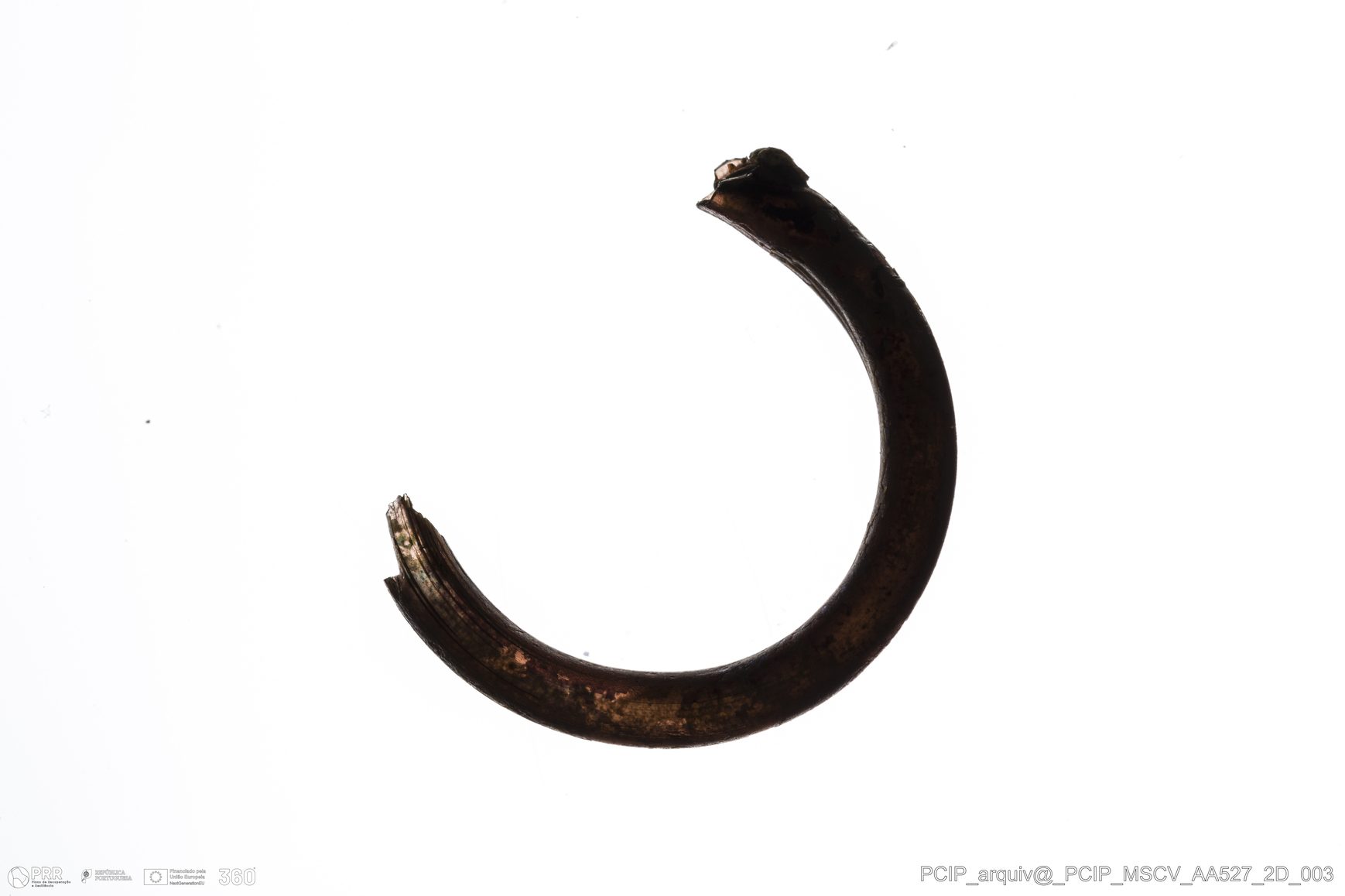 Matéria/Técnica: Vidro; Cronologia: Século XVI- XVII; Autoria: Desconhecida; Dimensões: Diâmetro máximo: 18mm; Altura: 3mm; Espessura: 3mm.