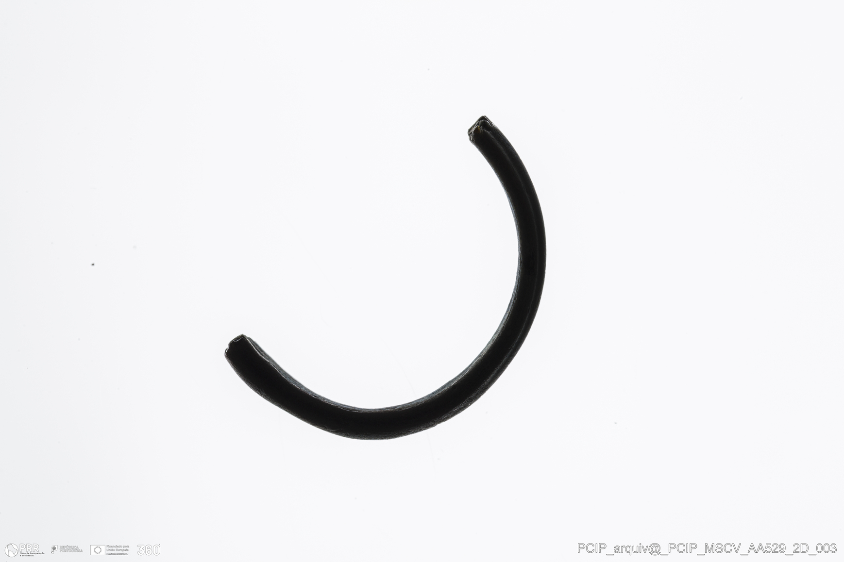 Matéria/Técnica: Vidro; Cronologia: Século XVI- XVII; Autoria: Desconhecida; Dimensões: Diâmetro máximo: 18mm; Altura: 4mm; Espessura: 1mm.