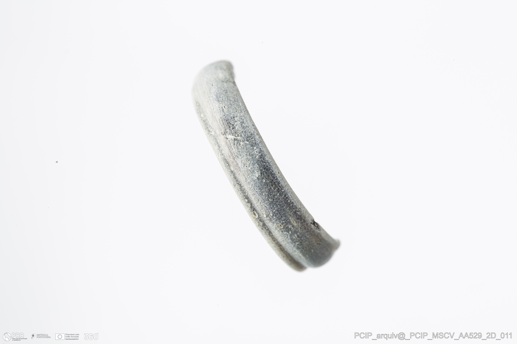 Matéria/Técnica: Vidro; Cronologia: Século XVI- XVII; Autoria: Desconhecida; Dimensões: Diâmetro máximo: 18mm; Altura: 4mm; Espessura: 1mm.