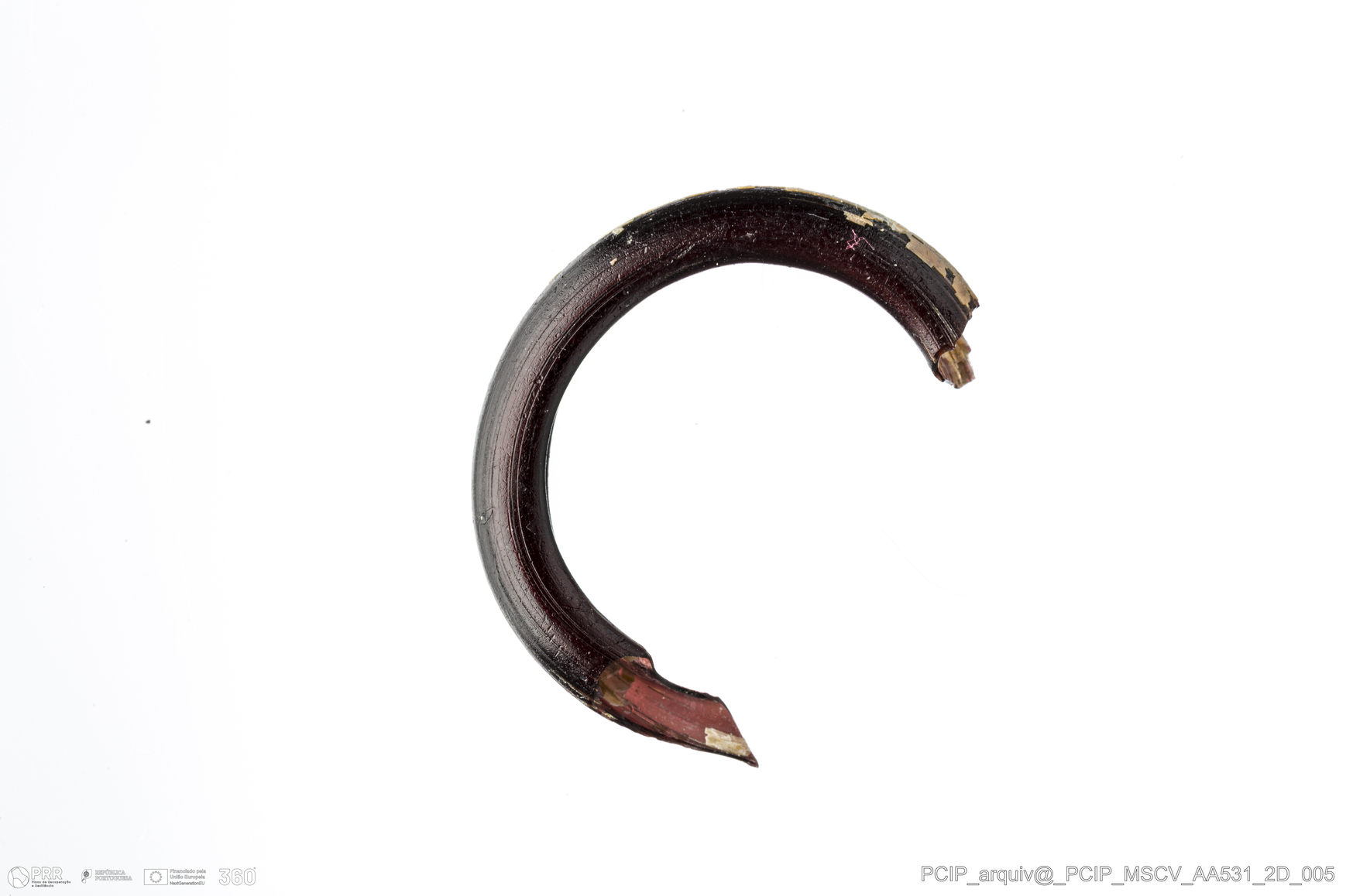 Matéria/Técnica: Vidro; Cronologia: Século XVI- XVII; Autoria: Desconhecida; Dimensões: Diâmetro máximo: 18mm; Altura: 3mm; Espessura: 3mm.