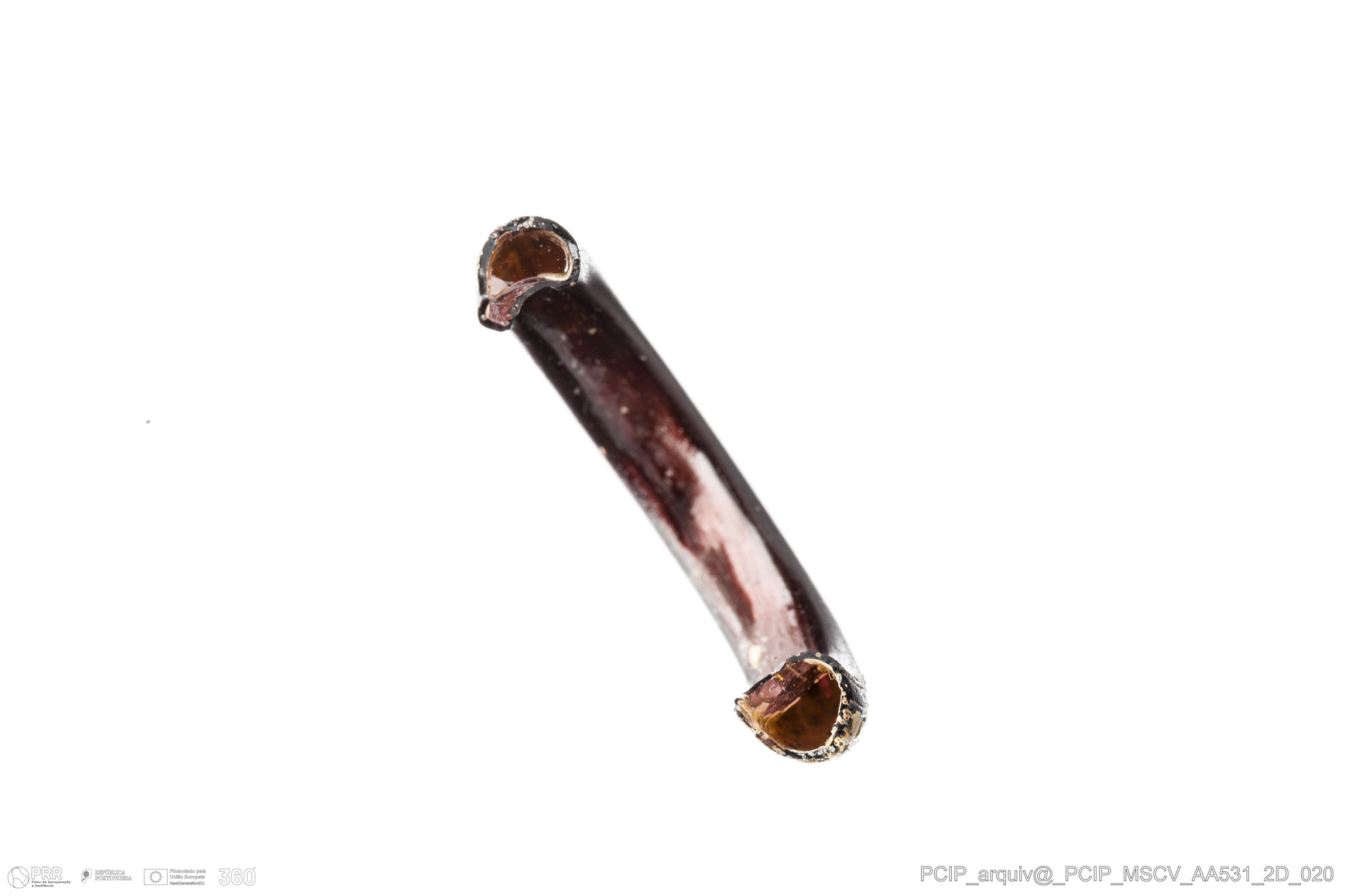 Matéria/Técnica: Vidro; Cronologia: Século XVI- XVII; Autoria: Desconhecida; Dimensões: Diâmetro máximo: 18mm; Altura: 3mm; Espessura: 3mm.