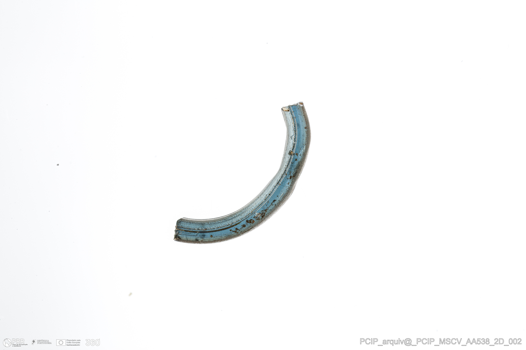 Matéria/Técnica: Vidro; Cronologia: Século XVI- XVII; Autoria: Desconhecida; Dimensões: Altura: 4mm; Espessura: 2mm.