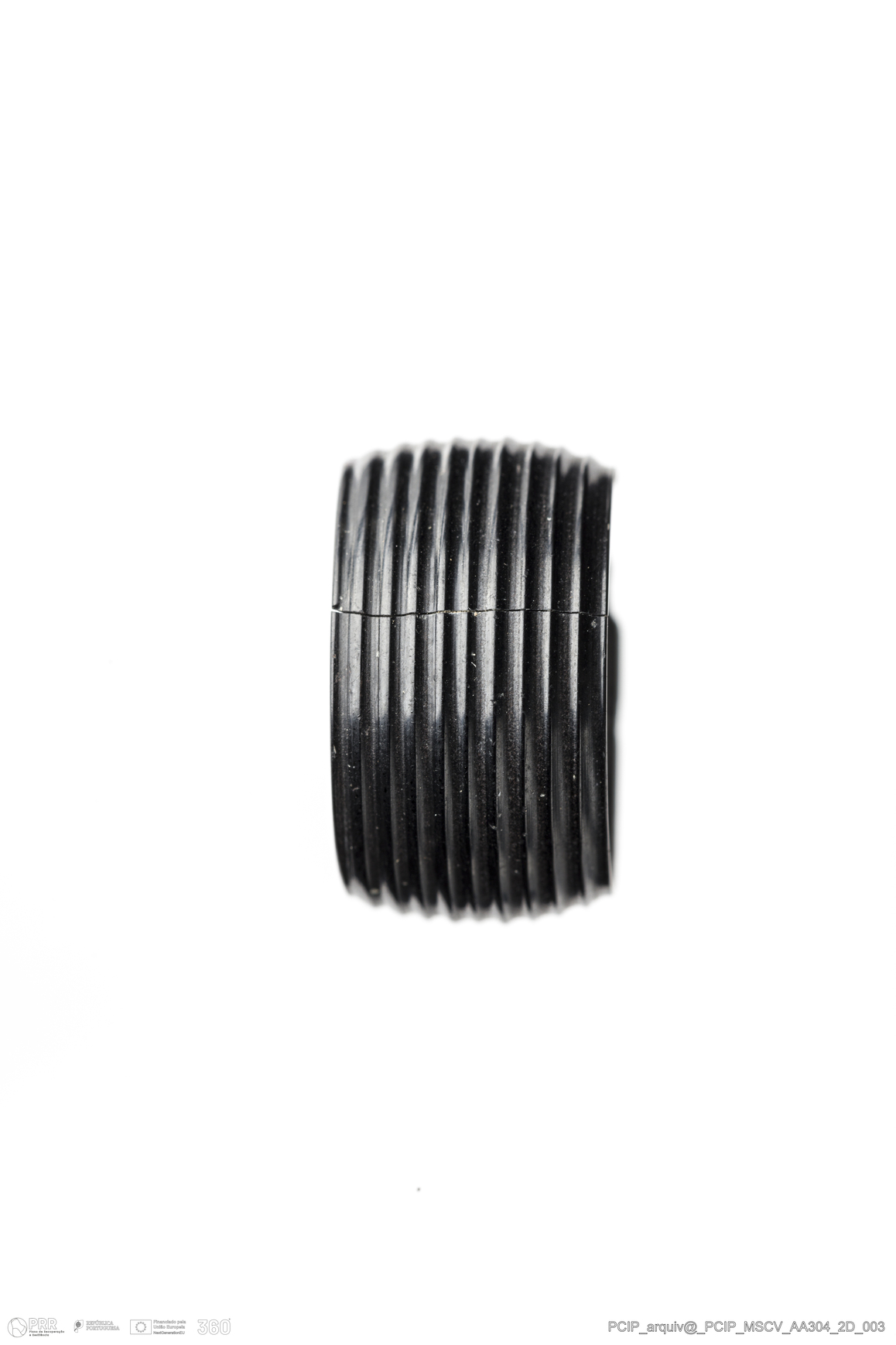 Matéria/Técnica: Azeviche; Cronologia: Século XVI-Século XVII; Autoria: Desconhecida; Dimensões: Diâmetro: 16,5mm; Altura: 9,5mm.