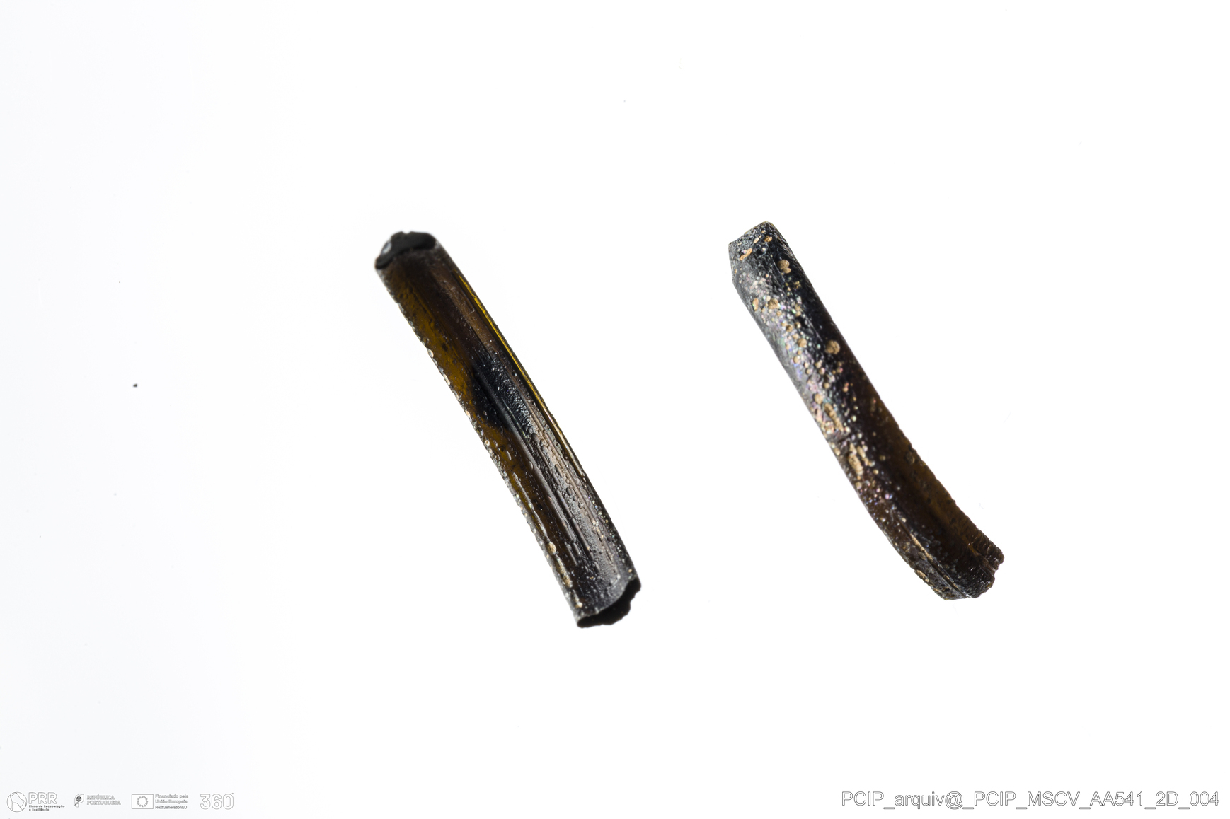 Matéria/Técnica: Vidro; Cronologia: Século XVI- XVII; Autoria: Desconhecida; Dimensões: Diâmetro máximo: 17mm; Altura: 3mm; Espessura: 1mm.