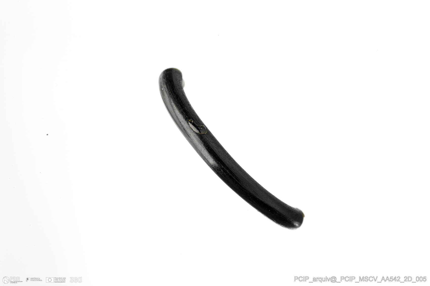 Matéria/Técnica: Vidro; Cronologia: Século XVI- XVII; Autoria: Desconhecida; Dimensões: Diâmetro máximo: 18mm; Altura: 1mm; Espessura: 1mm.