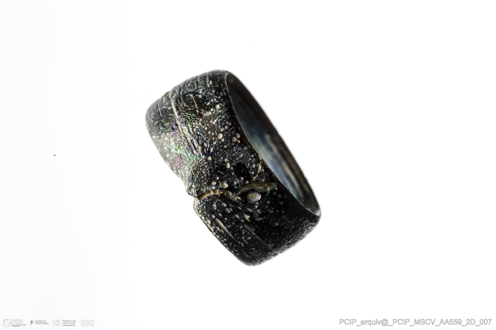 Matéria/Técnica: Vidro; Cronologia: Século XVI- XVII; Autoria: Desconhecida; Dimensões: Diâmetro máximo: 17mm; Altura: 8mm; Espessura: 2mm.