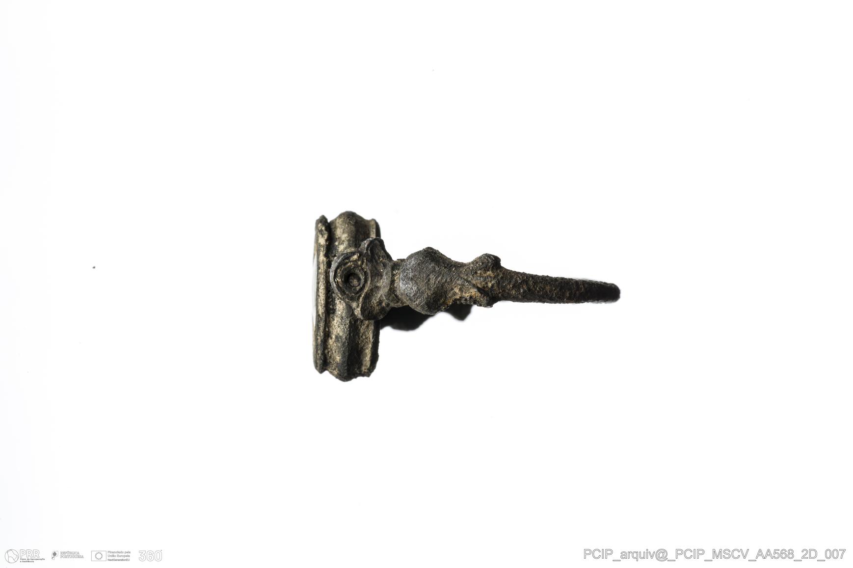 Matéria/Técnica: Metal e vidro; Cronologia: Século XVI-Século XVII; Autoria: Desconhecida; Dimensões: Comprimento: 21mm; Altura: 12mm.