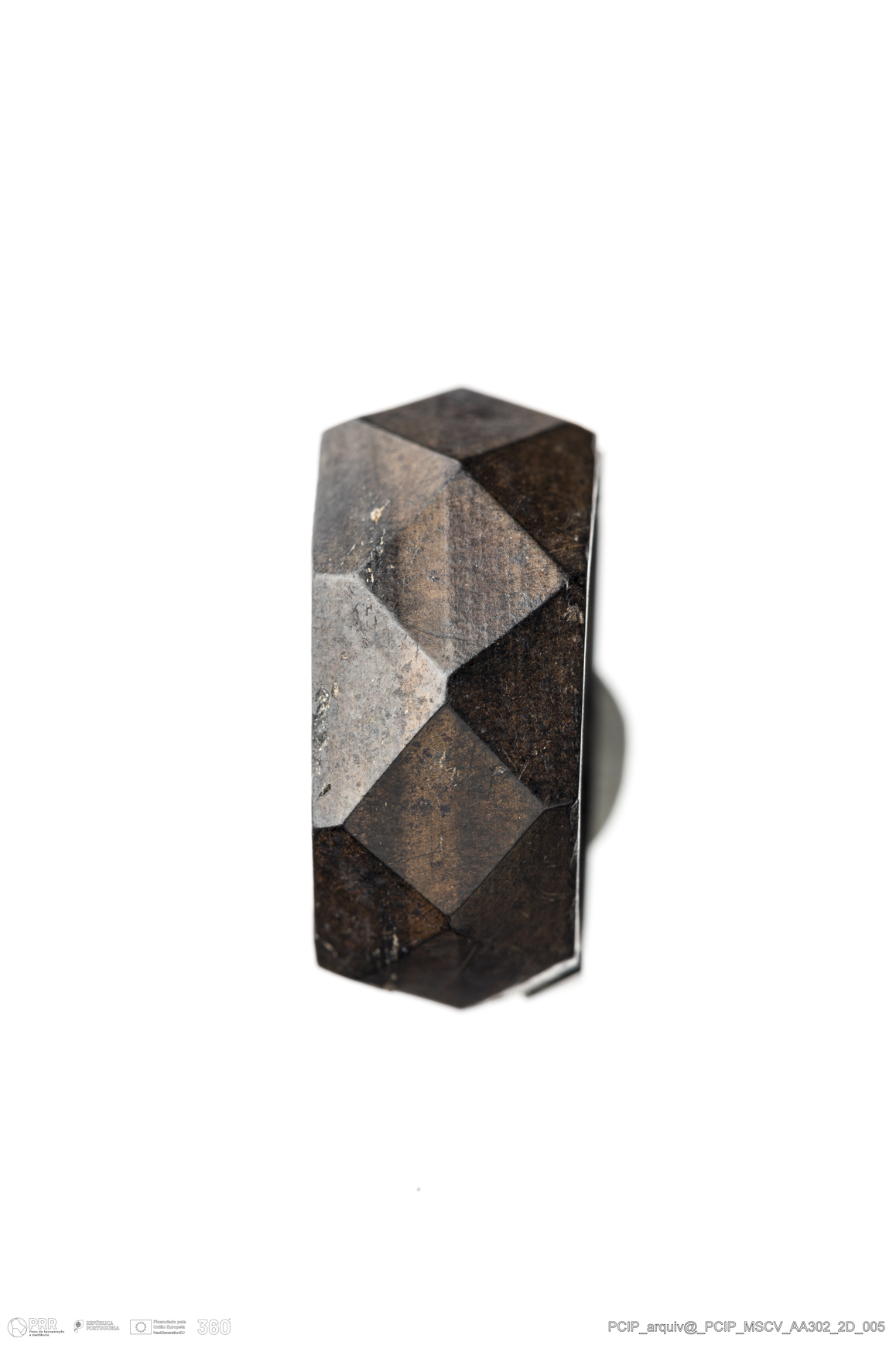 Matéria/Técnica: Indeterminado; Cronologia: Século XVI-Século XVII; Autoria: Desconhecida; Dimensões: Diâmetro: 21mm; Altura: 19,5mm.