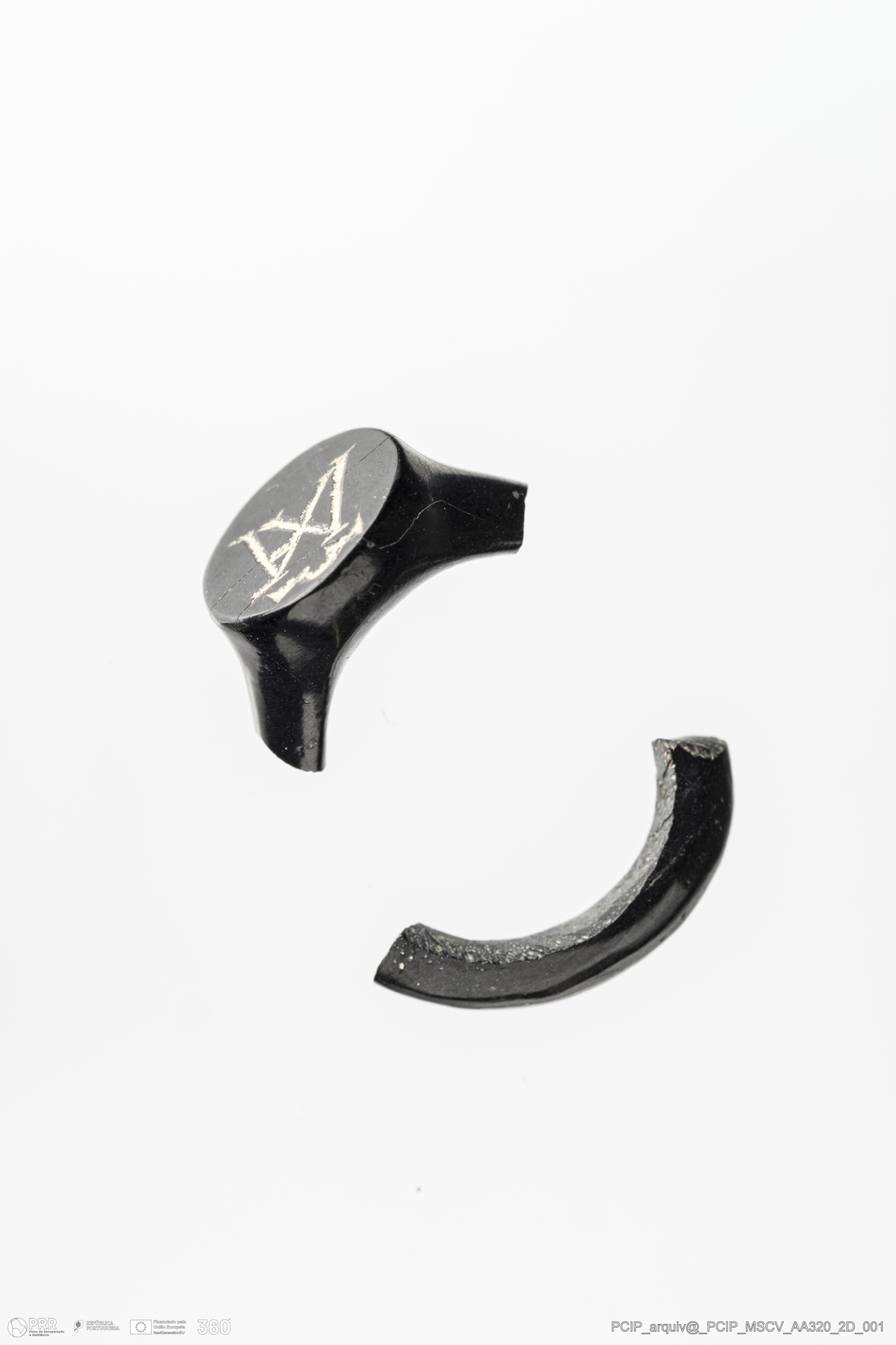Matéria/Técnica: Azeviche; Cronologia: Século XVI-Século XVII; Autoria: Desconhecida; Dimensões: Remate: Diâmetro: 10,5mm; Espessura: 5mm.