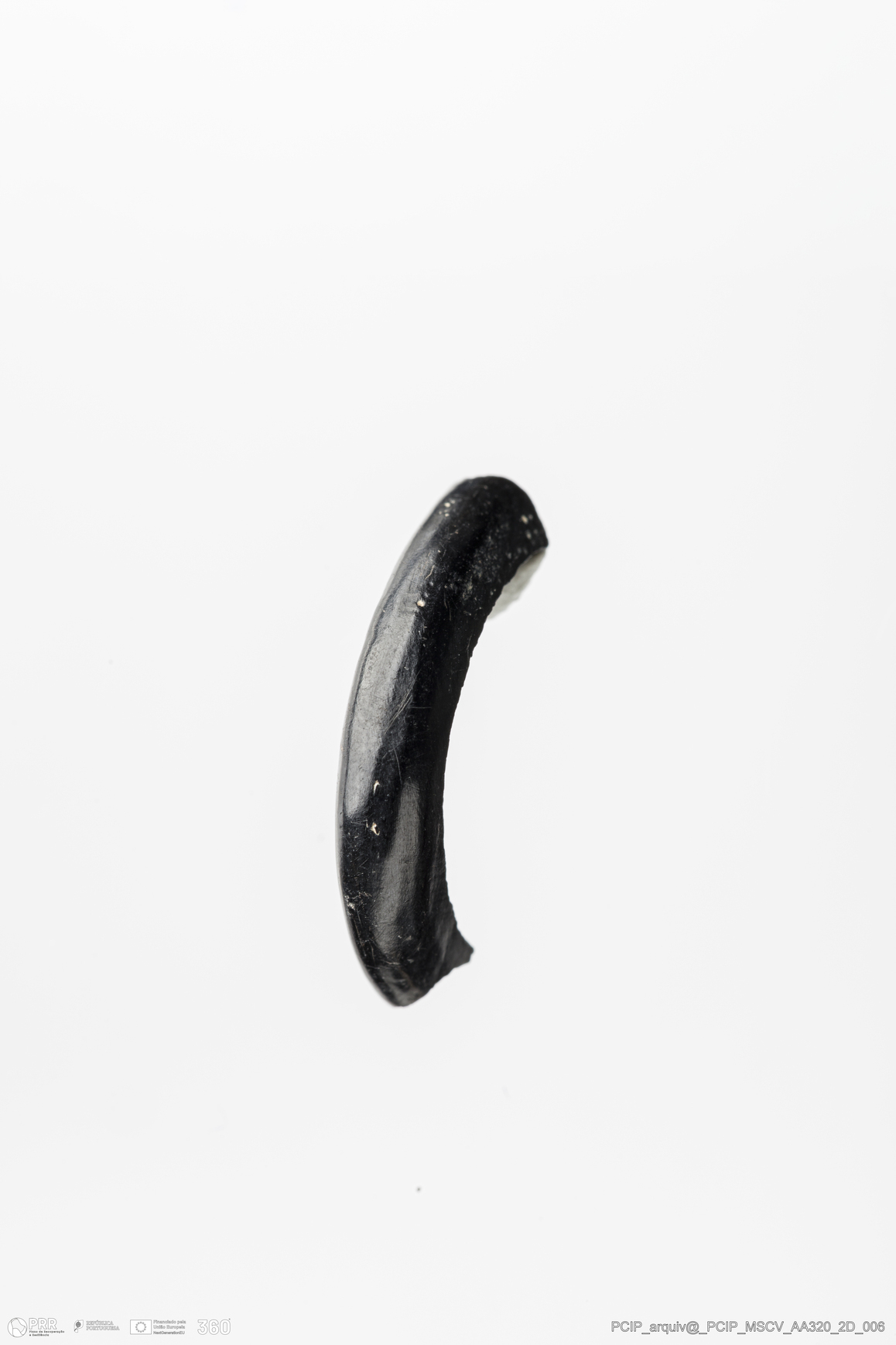 Matéria/Técnica: Azeviche; Cronologia: Século XVI-Século XVII; Autoria: Desconhecida; Dimensões: Remate: Diâmetro: 10,5mm; Espessura: 5mm.