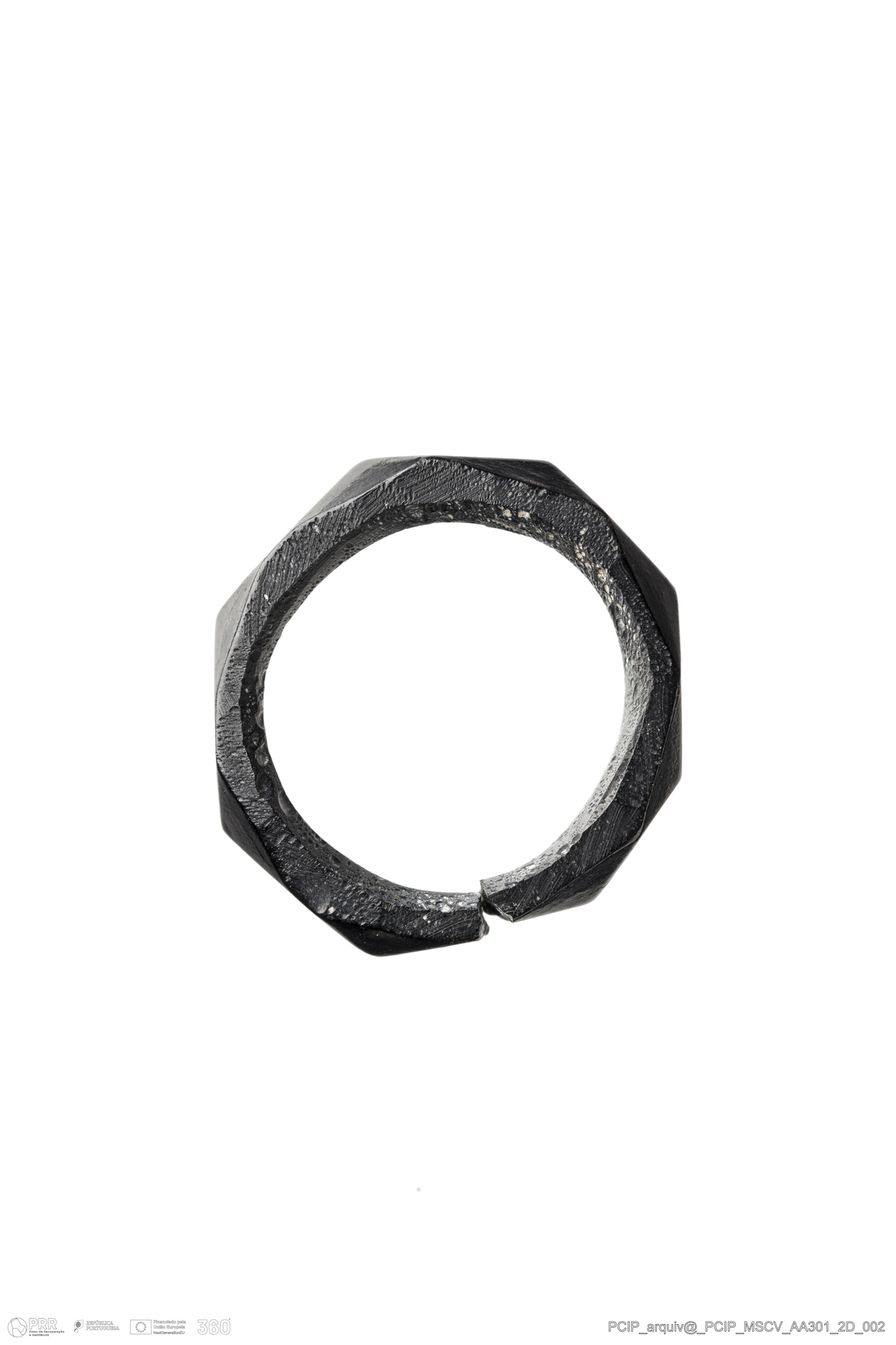 Matéria/Técnica: Azeviche; Cronologia: Século XVI-Século XVII; Autoria: Desconhecida; Dimensões: Diâmetro: 17,5mm; Altura: 40,4mm.