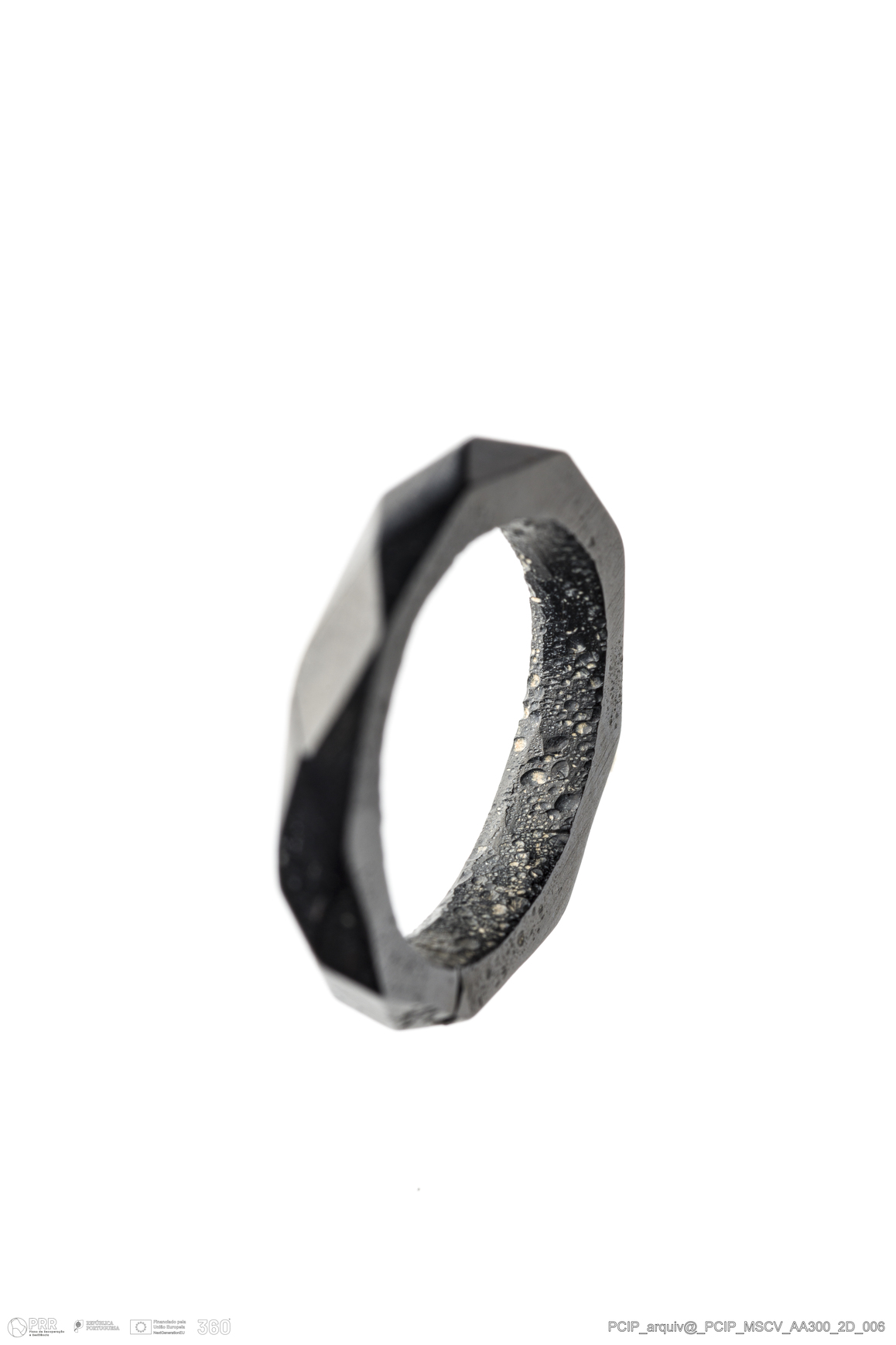 Matéria/Técnica: Azeviche; Cronologia: Século XVI-Século XVII; Autoria: Desconhecida; Dimensões: Diâmetro: 21,5mm; Altura: 3mm.