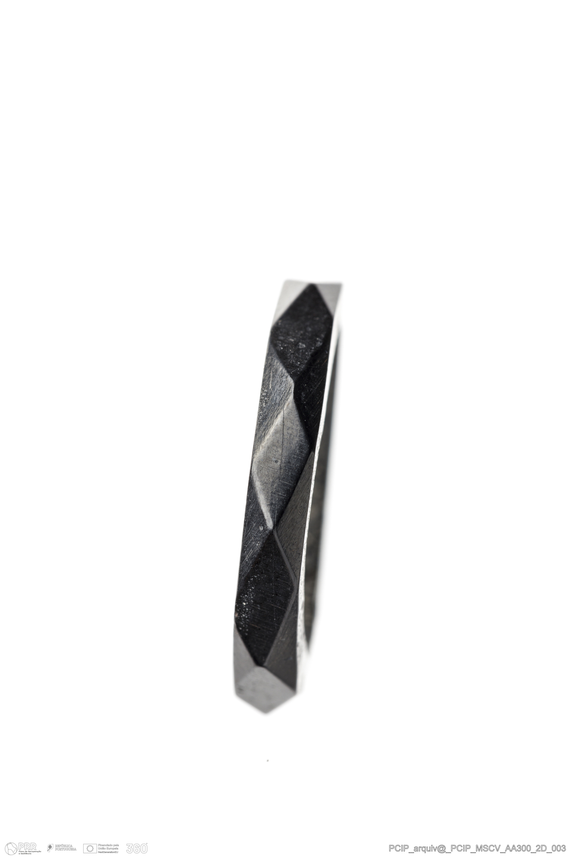 Matéria/Técnica: Azeviche; Cronologia: Século XVI-Século XVII; Autoria: Desconhecida; Dimensões: Diâmetro: 21,5mm; Altura: 3mm.