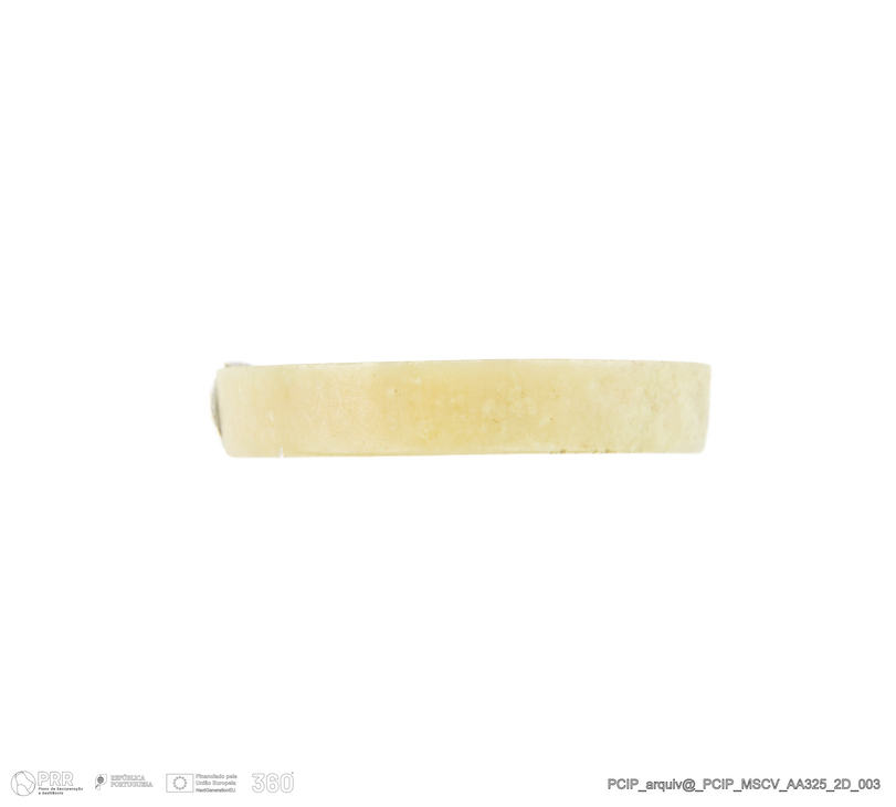 Matéria/Técnica: Marfim; Cronologia: Século XVI- XVII; Autoria: Desconhecida; Dimensões: Altura: 4mm; Espessura: 2mm.