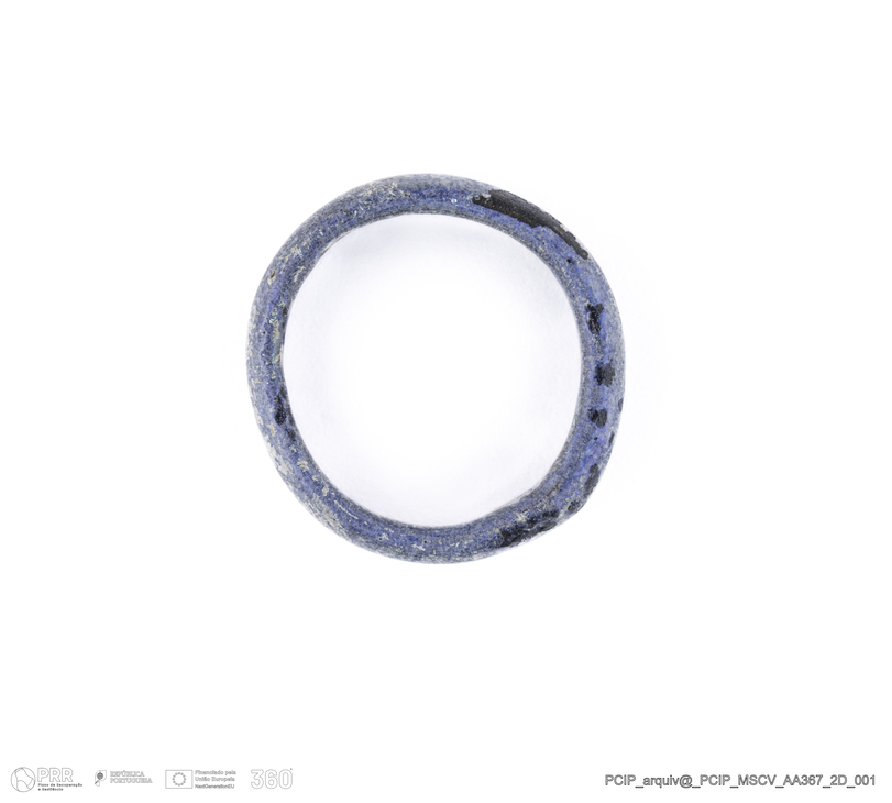 Matéria/Técnica: Vidro; Cronologia: Século XVI -XVII; Autoria: Desconhecida; Dimensões: Diâmetro: 17mm; Altura: 3mm.