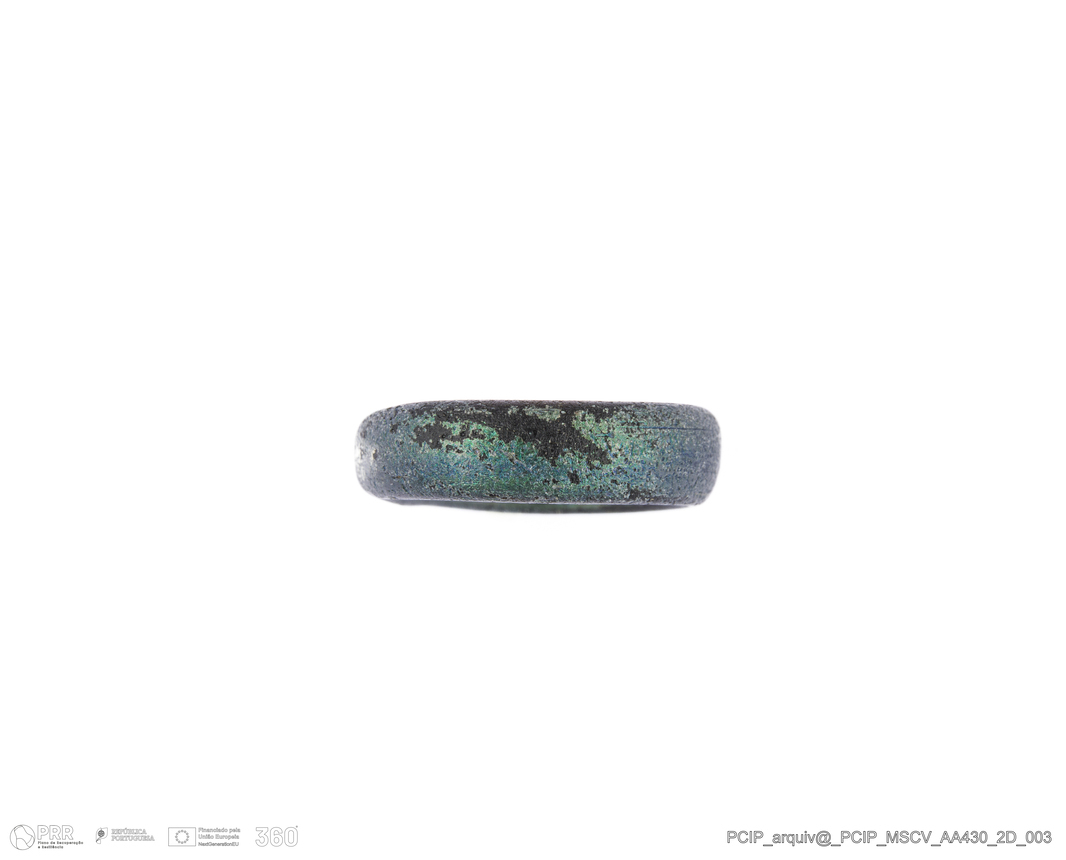 Matéria/Técnica: Vidro; Cronologia: Século XVI- XVII; Autoria: Desconhecida; Dimensões: Diâmetro máximo: 17mm; Altura: 5mm; Espessura: 2mm.