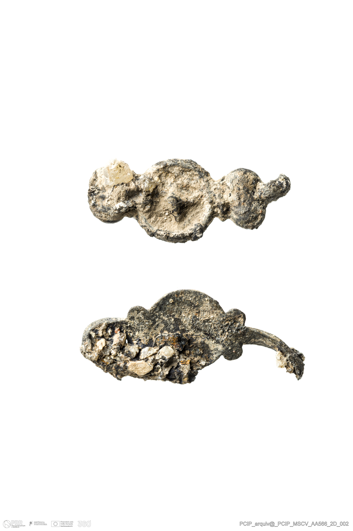 Matéria/Técnica: Metal; Cronologia: Século XVI- XVII; Autoria: Desconhecida; Dimensões: Altura máxima:8mm Espessura máxima:2mm.