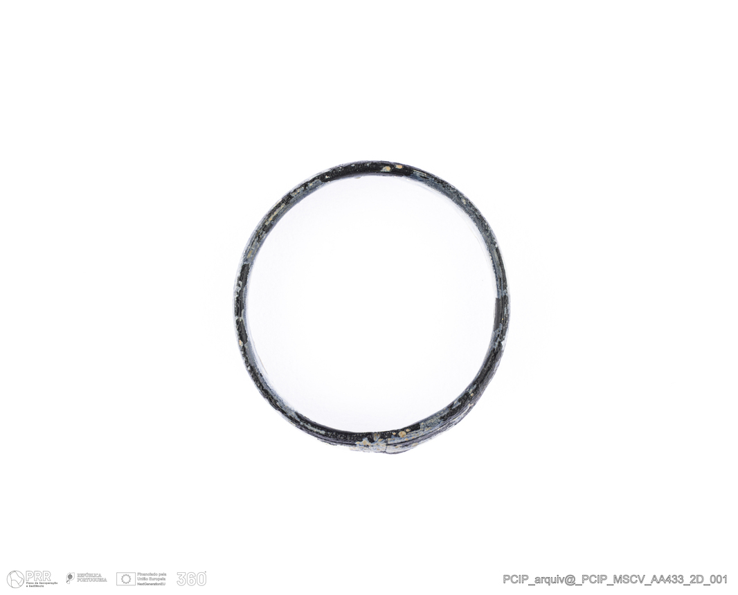 Matéria/Técnica: Vidro; Cronologia: Século XVI- XVII; Autoria: Desconhecida; Dimensões: Diâmetro máximo: 19mm; Altura: 4mm; Espessura: 1mm.