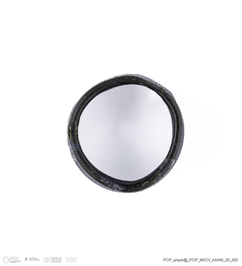 Matéria/Técnica: Vidro; Cronologia: Século XVI- XVII; Autoria: Desconhecida; Dimensões: Diâmetro máximo: 19mm; Altura: 10mm; Espessura: 2mm.
