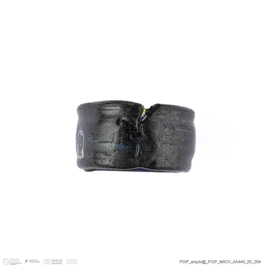 Matéria/Técnica: Vidro; Cronologia: Século XVI- XVII; Autoria: Desconhecida; Dimensões: Diâmetro máximo: 19mm; Altura: 10mm; Espessura: 2mm.