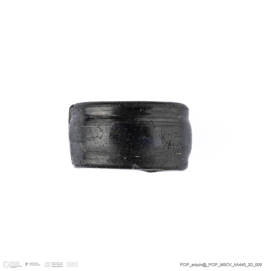 Matéria/Técnica: Vidro; Cronologia: Século XVI- XVII; Autoria: Desconhecida; Dimensões: Diâmetro máximo: 19mm; Altura: 10mm; Espessura: 2mm.