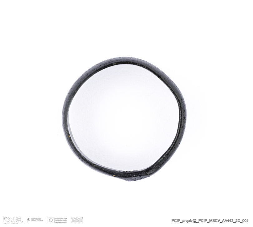 Matéria/Técnica: Vidro; Cronologia: Século XVI- XVII; Autoria: Desconhecida; Dimensões: Diâmetro máximo: 18mm; Altura: 6mm; Espessura: 1mm.